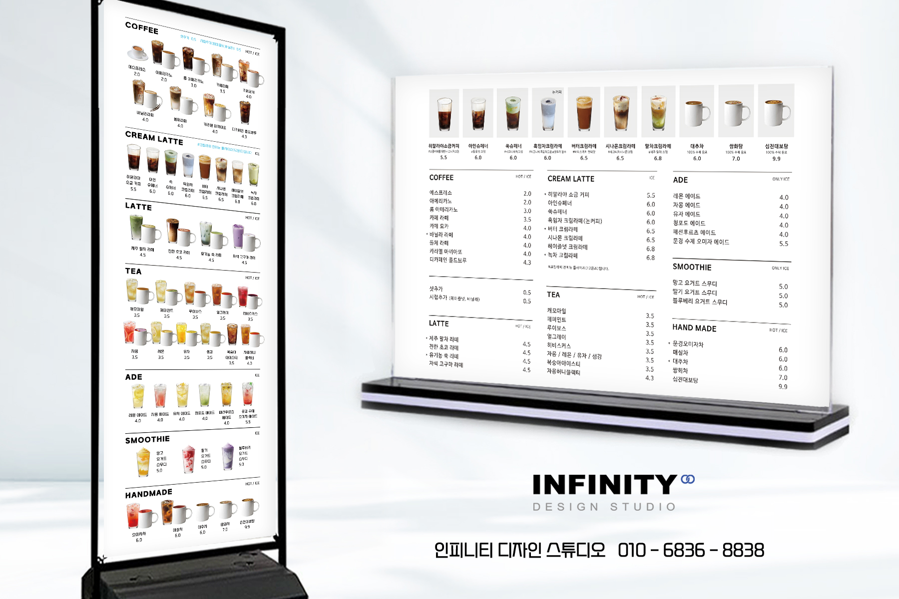 카페 키오스크 메뉴 사진 세트 제작, DID 메뉴판 디자인, 커피 사진 촬영제작