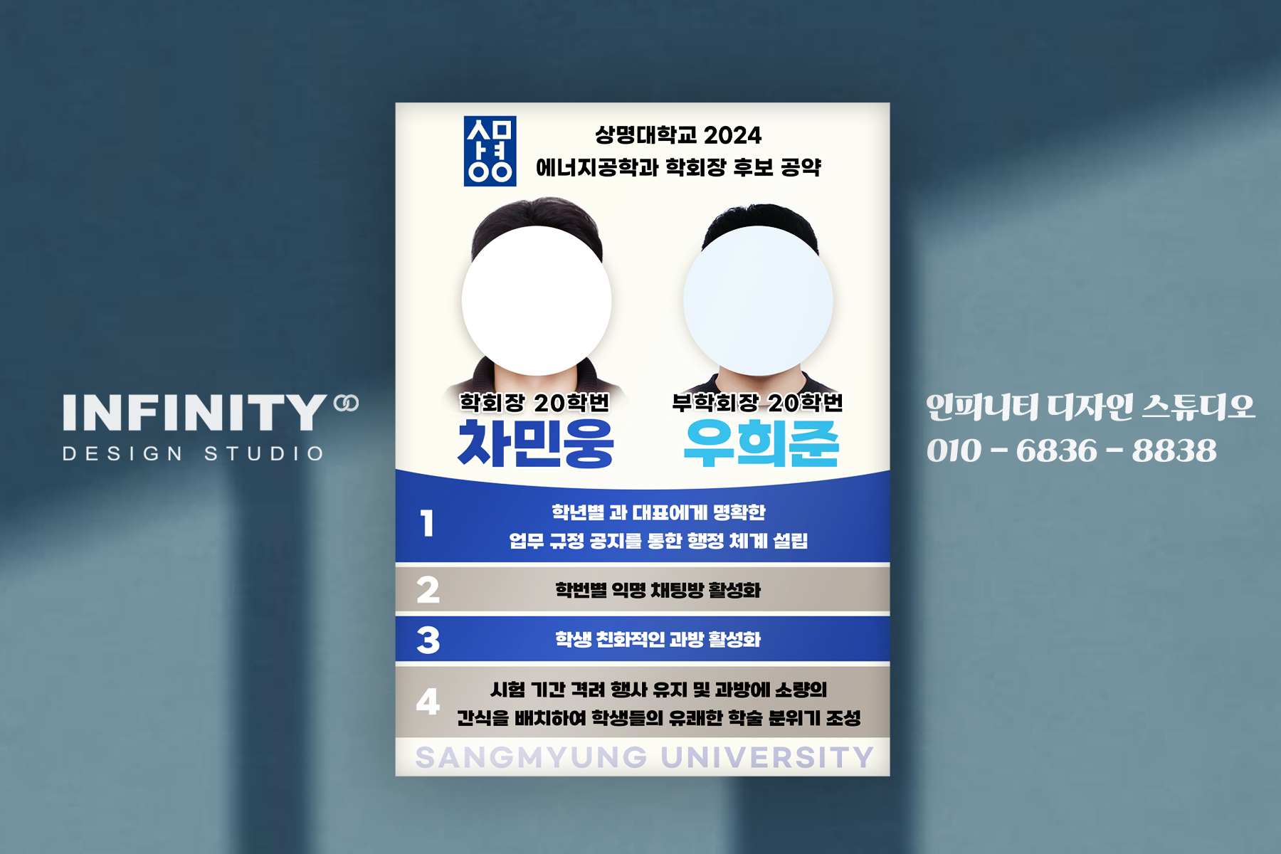 안녕하세요, 디자인, 제작 전문인피니티 디자인 스튜디오 입니다. 오늘은 전교회장 부회장 후보 선거포스터디자인, 제작 소식 포스팅 준비했어요! 원하는 디자인, 사이즈로 제작해드리는선