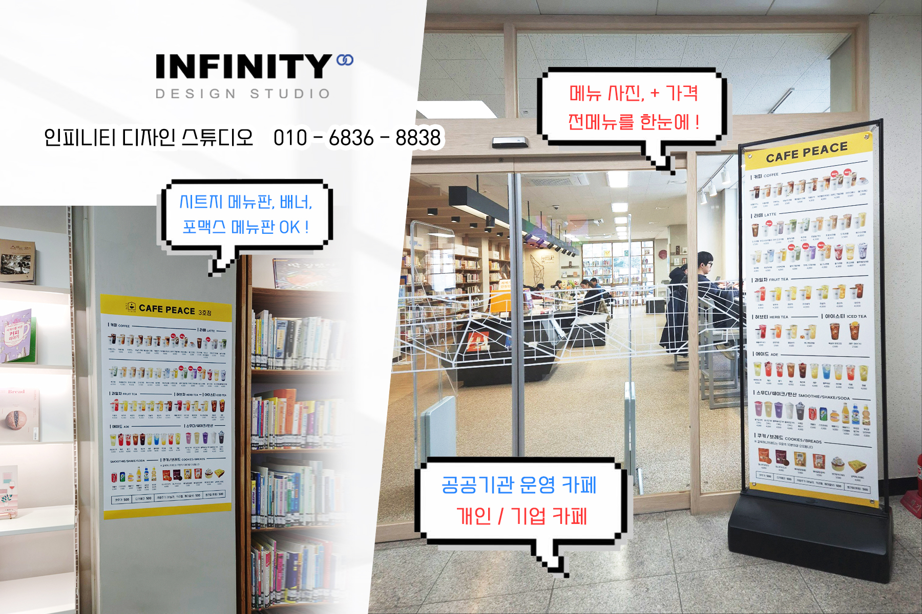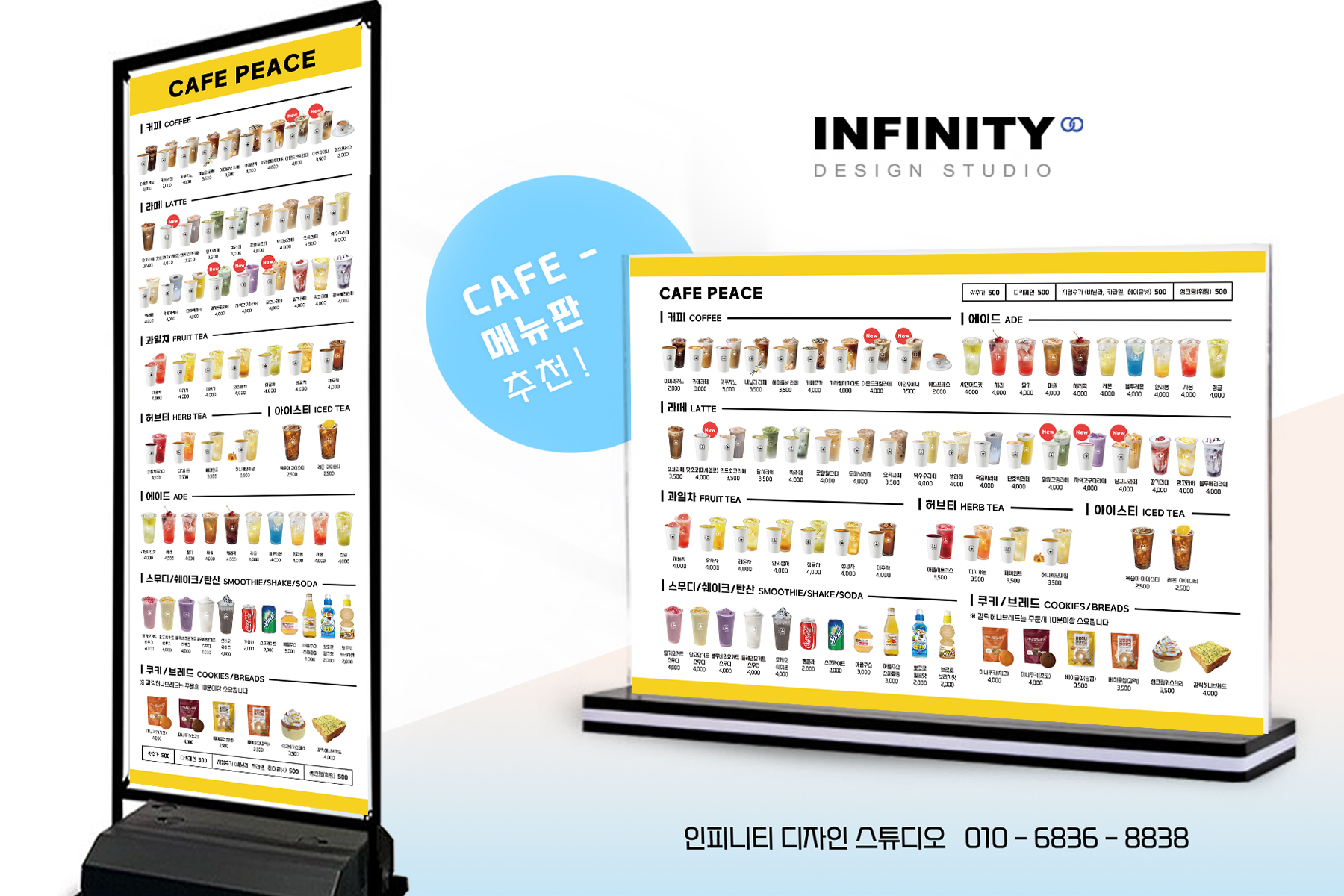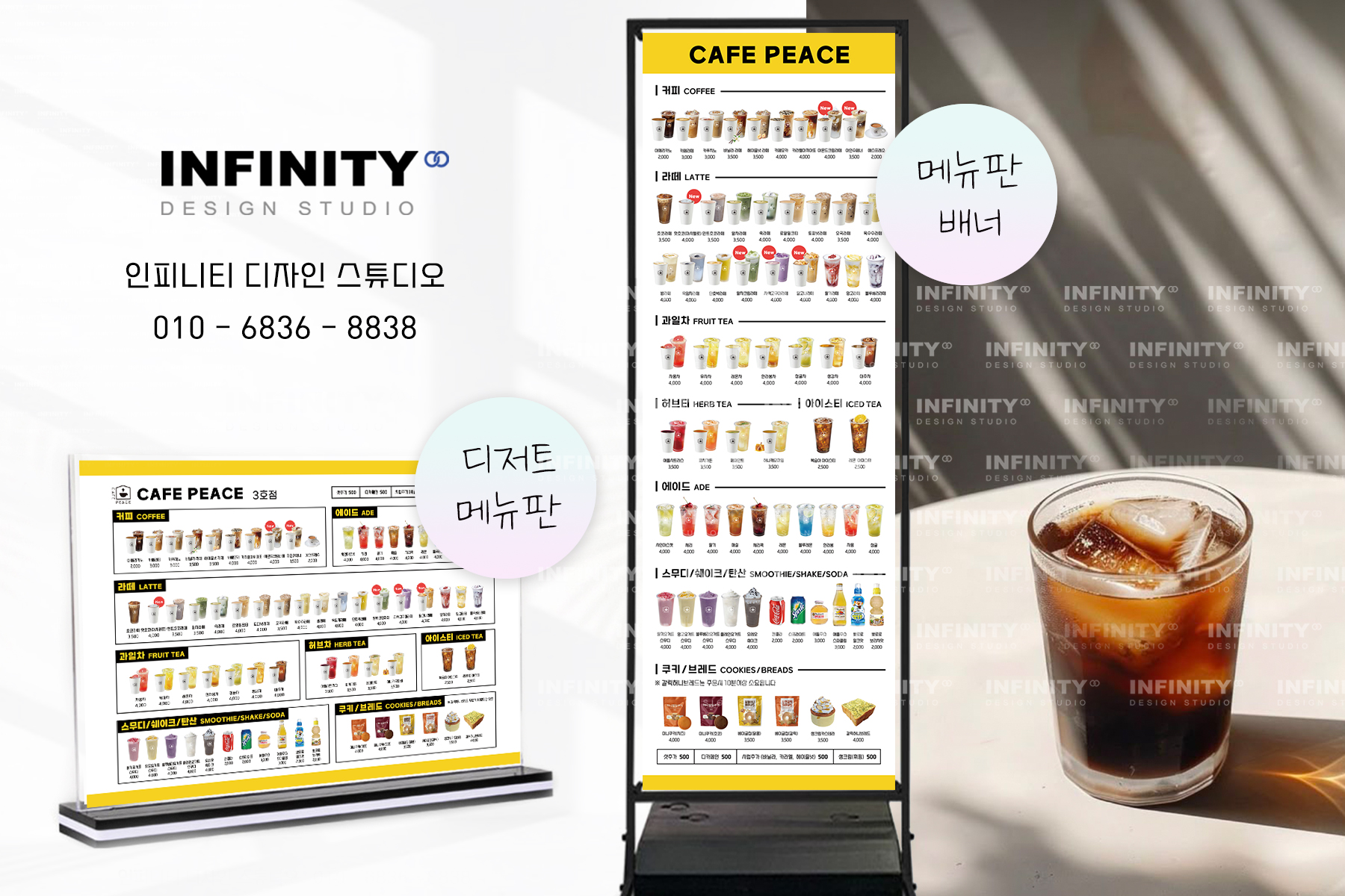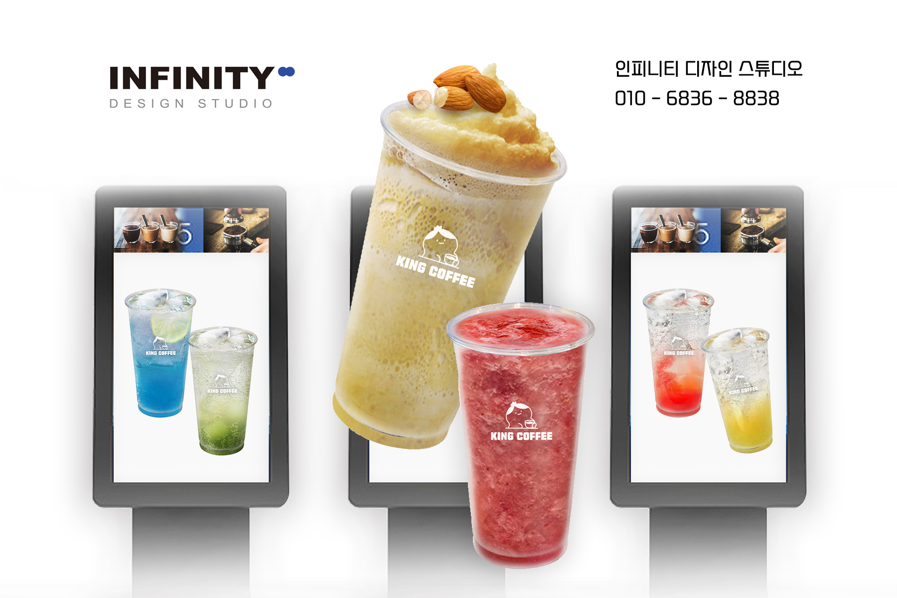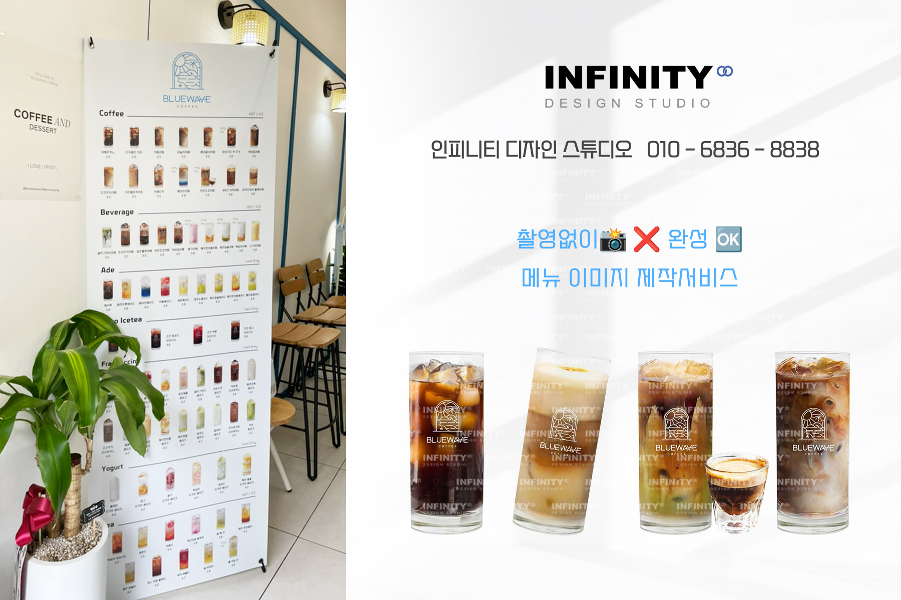 안녕하세요, 디자인, 제작 전문인피니티 디자인 스튜디오 입니다.오늘은 카페 오픈 준비로 진행된키오스크 메뉴사진 촬영 제작, 메뉴판 배너 제작소식 포스팅 드립니다 카페오픈, 운영중 필