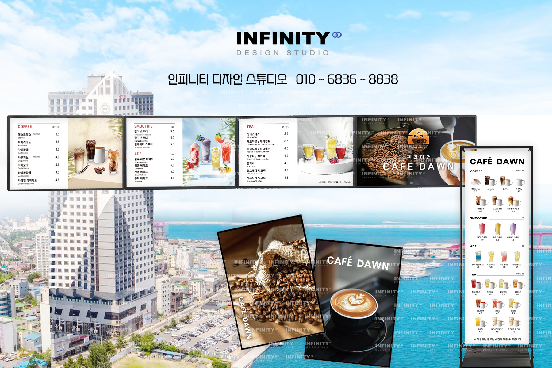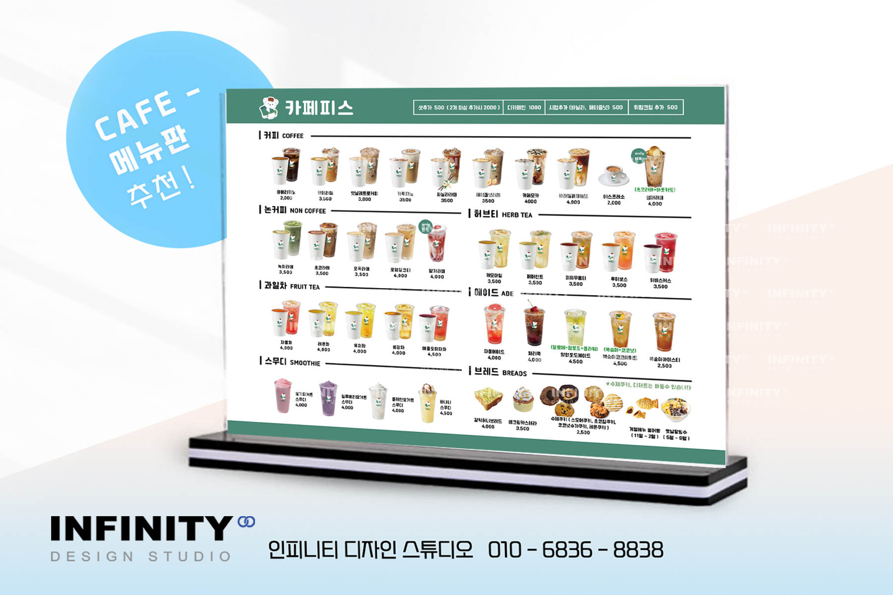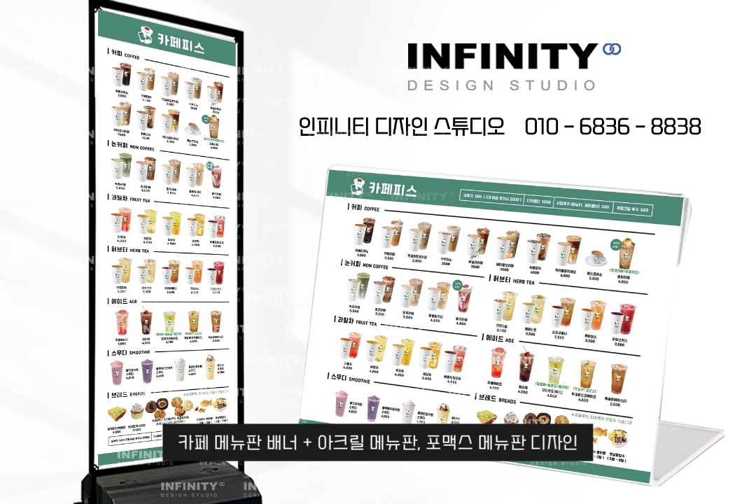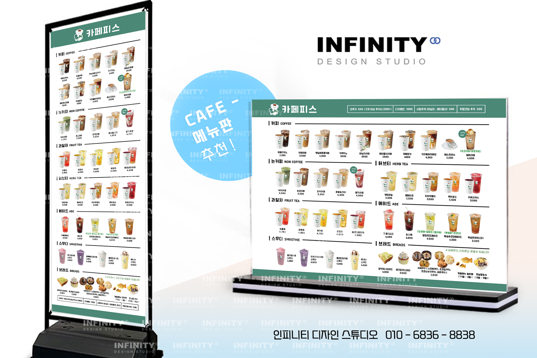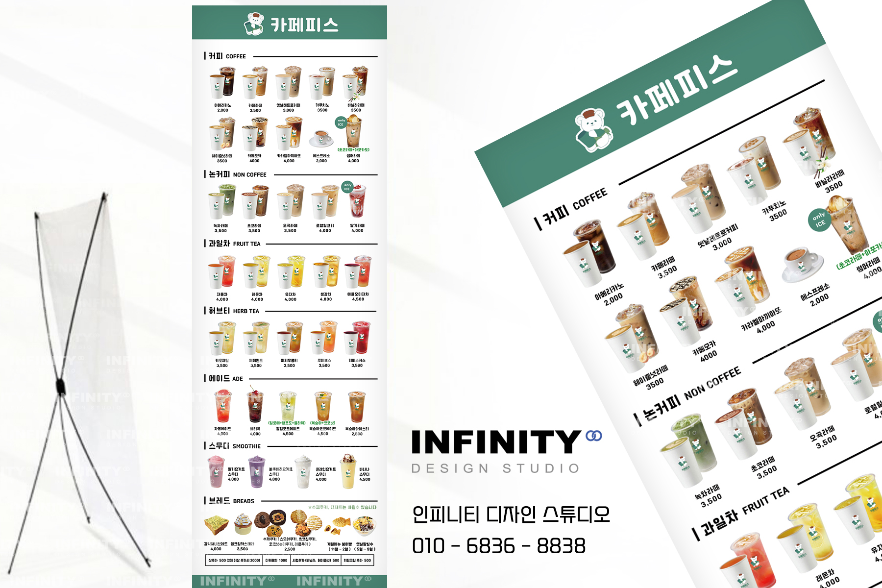 안녕하세요, 디자인, 제작 전문인피니티 디자인 스튜디오 입니다.오늘은 카페 오픈 준비로 진행된키오스크 메뉴사진 촬영 제작, 메뉴판 배너 제작소식 포스팅 드립니다 카페오픈, 운영중 필