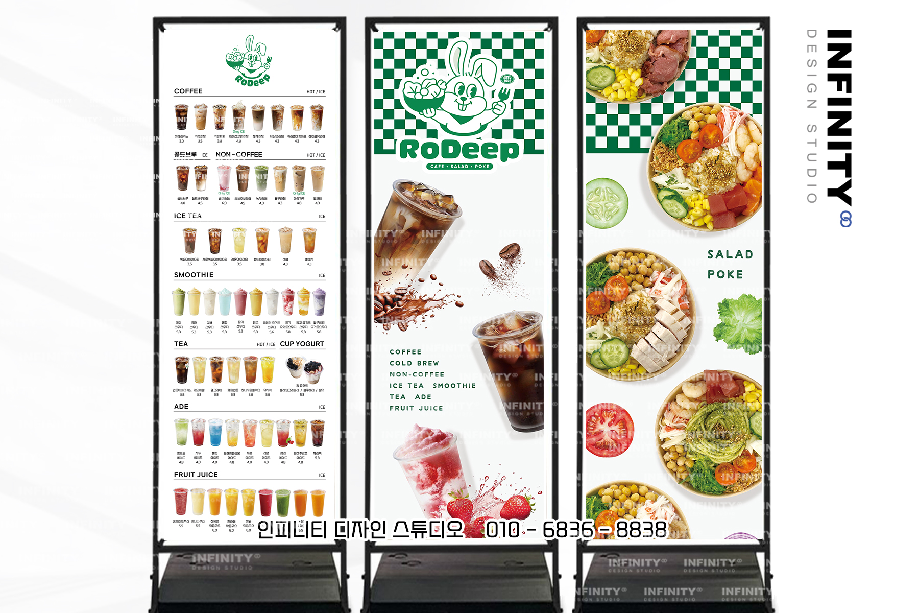 카페 내부, 외부에 세워두는 메뉴판 배너의 경우,