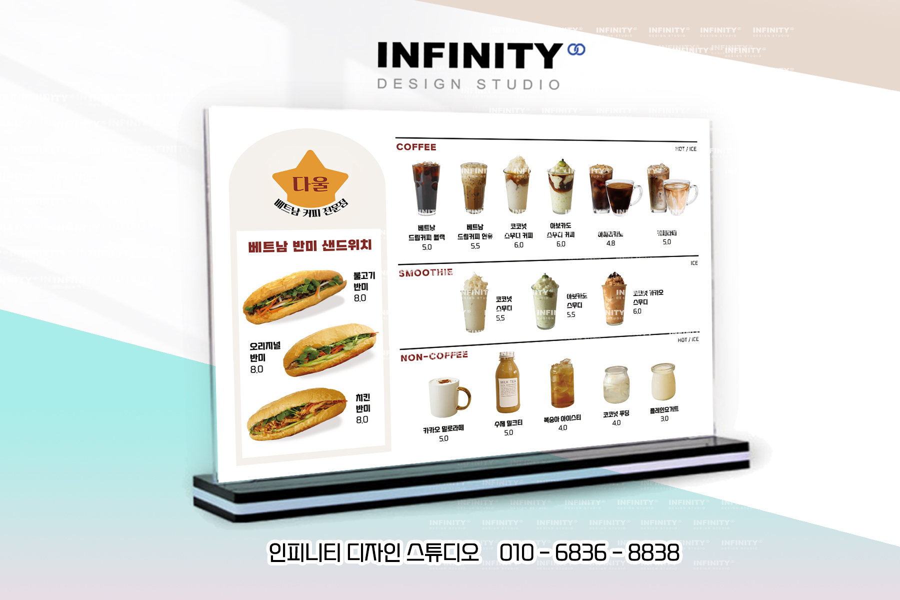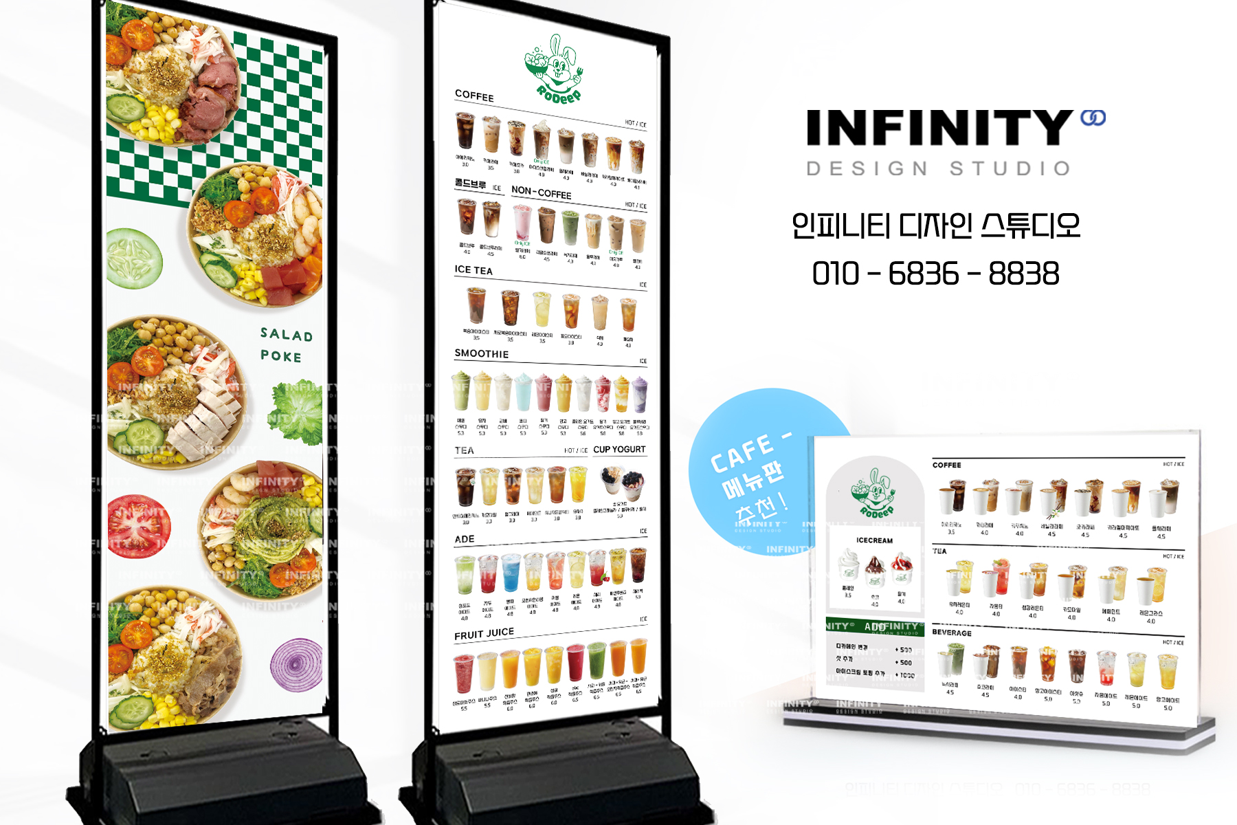 안녕하세요, 디자인 제작 전문인피니티 디자인 스튜디오 입니다.오늘은 카페 배너 + 포맥스 메뉴판SET 세트 메뉴판 제작소식 포스팅 드립니다 :) 음료 사진이 없으셔도우리매장 리스트에 맞게