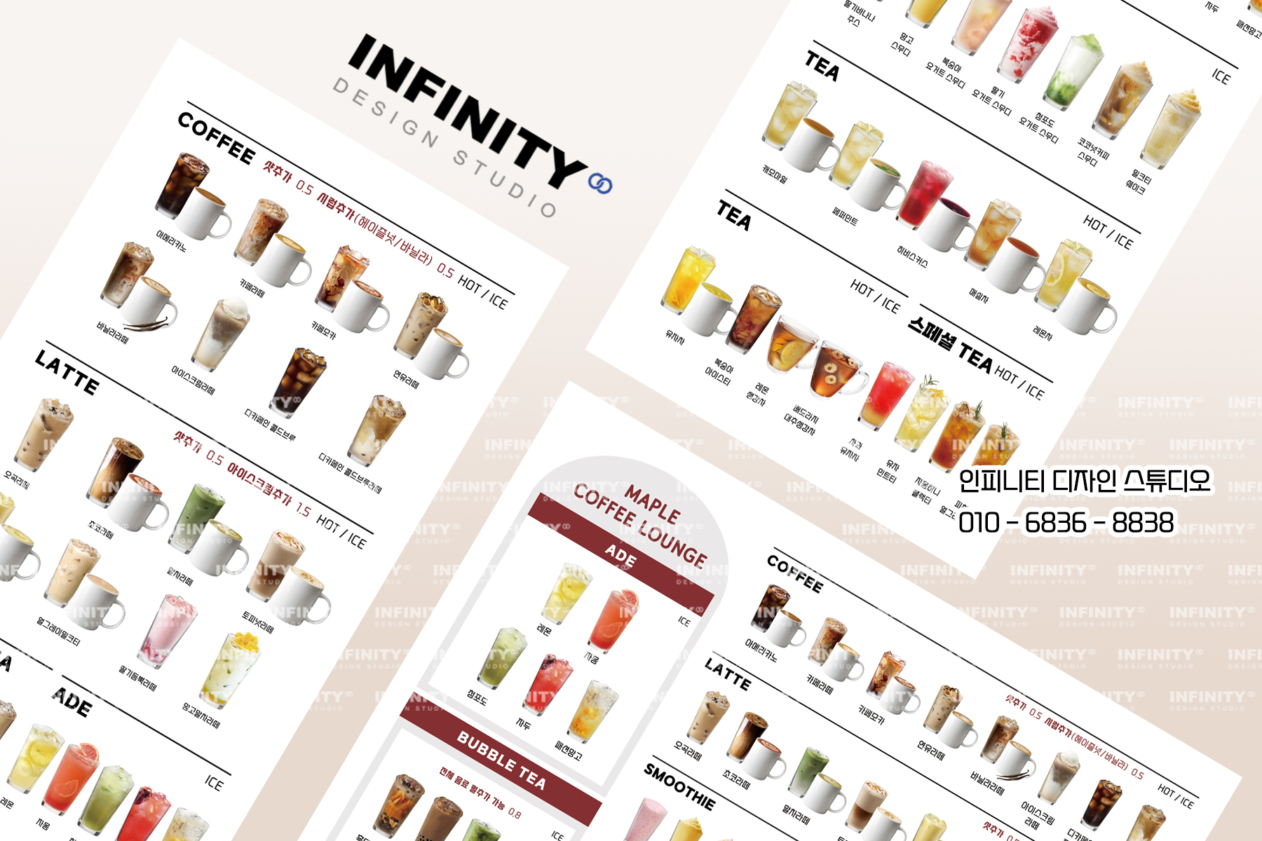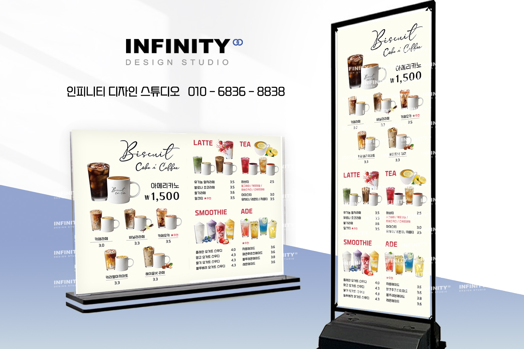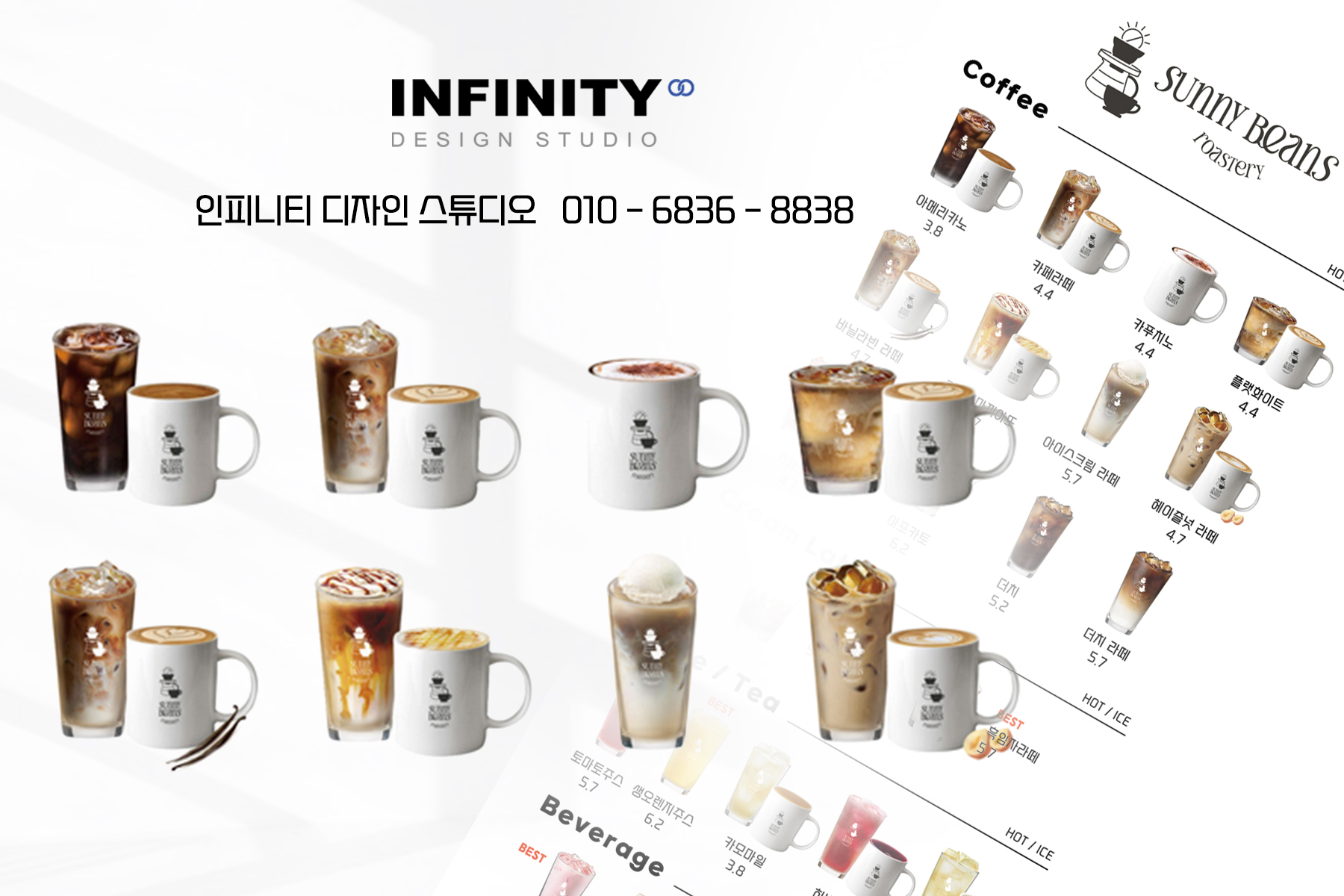 안녕하세요, 디자인, 제작 전문인피니티 디자인 스튜디오 입니다. 오늘은 카페 오픈 준비로 진행된카페 키오스크 메뉴이미지 제작과 배너, DID, 메뉴판 등 다양한 품목 진행소식 드립니다 :) 먼저