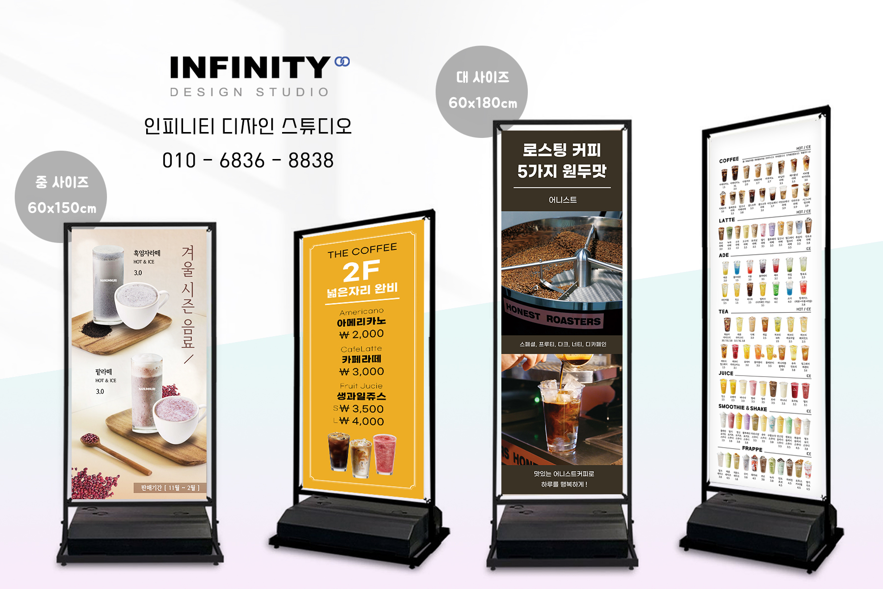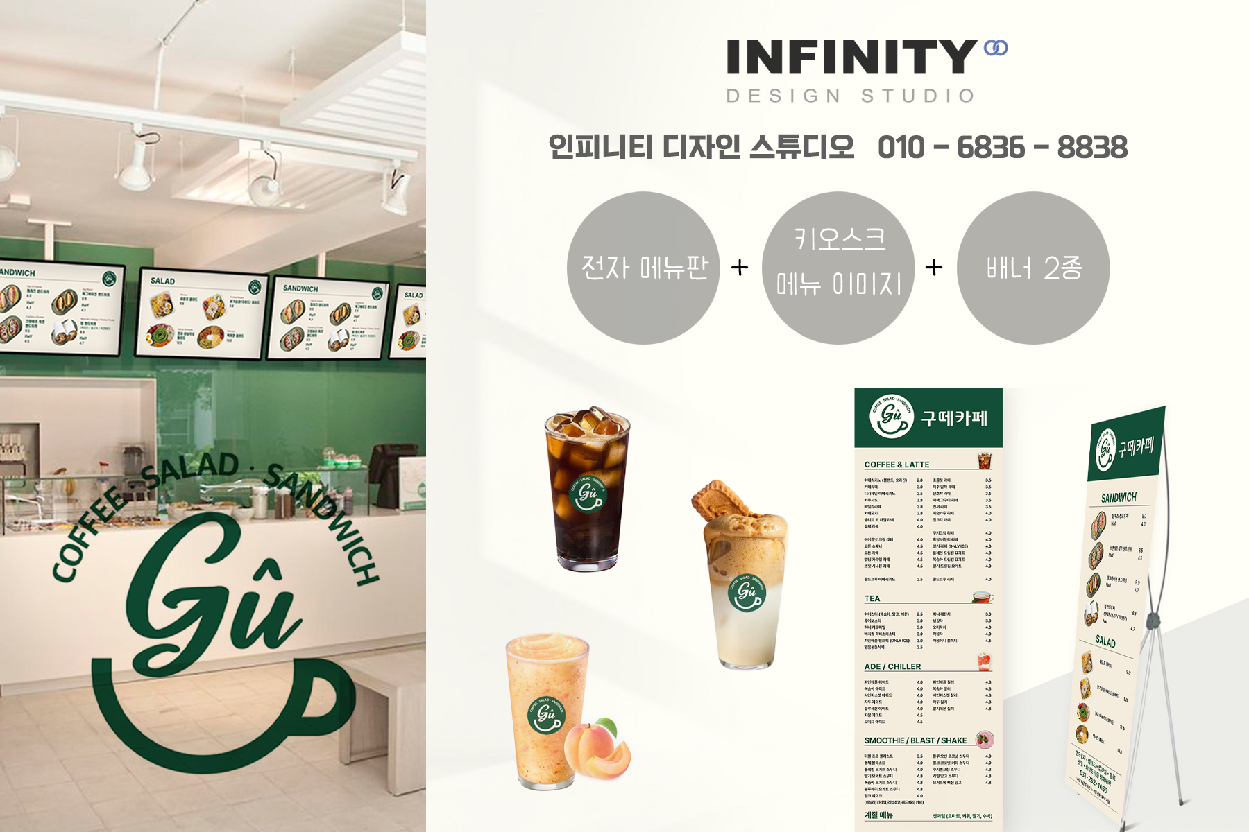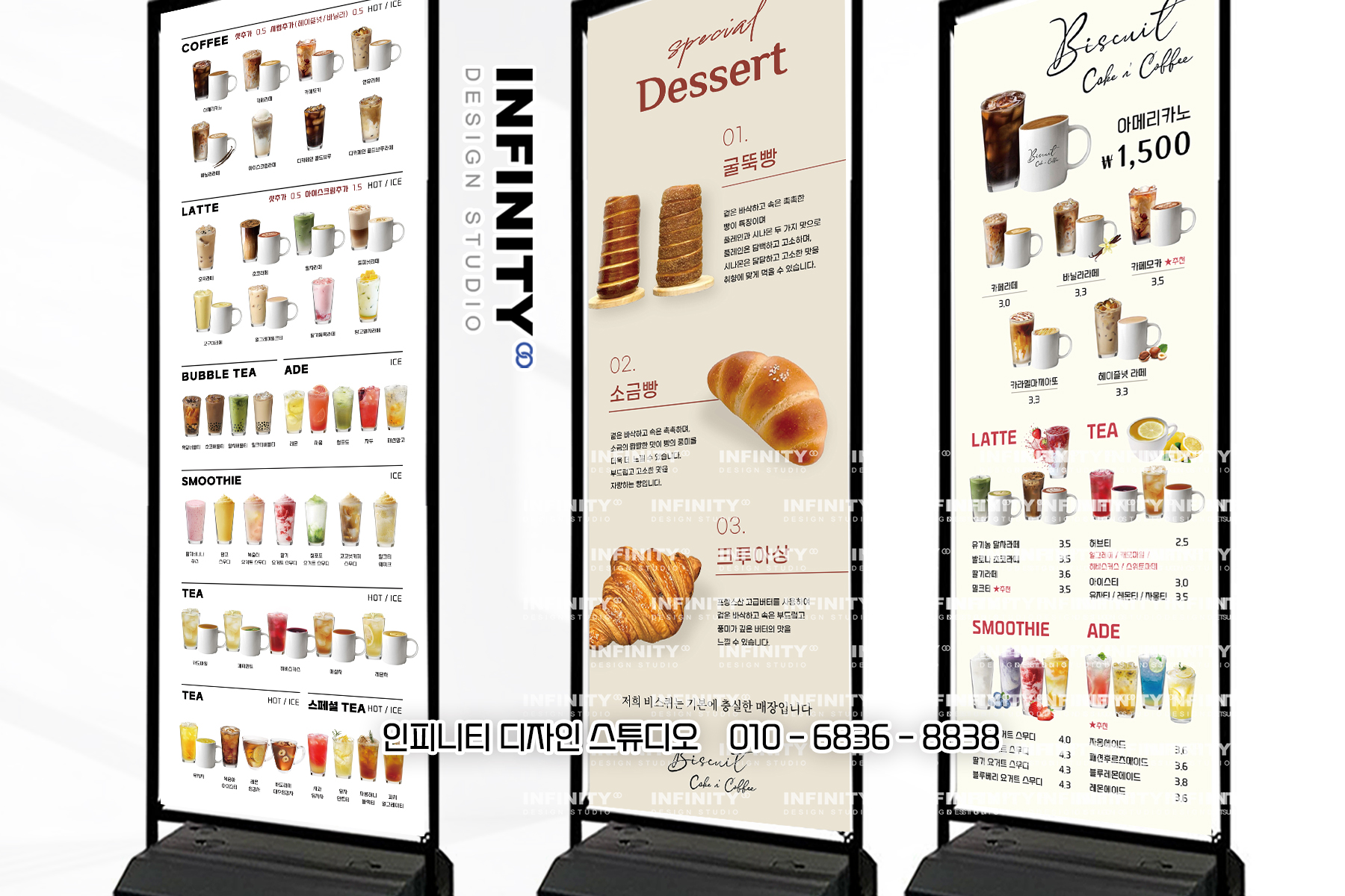 안녕하세요, 디자인, 제작 전문인피니티 디자인 스튜디오 입니다. 오늘은 카페 오픈 준비로 진행된카페 키오스크 메뉴이미지 제작과 배너, DID, 메뉴판 등 다양한 품목 진행소식 드립니다 :) 먼저