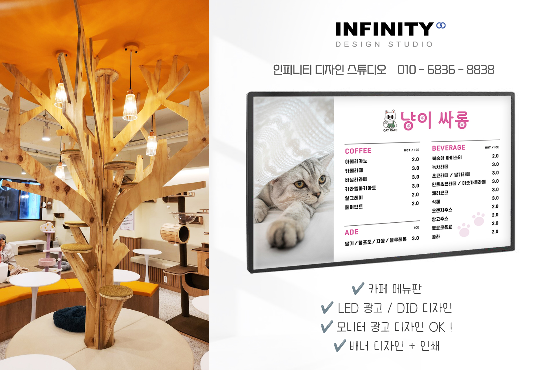 안녕하세요, 디자인, 제작 전문인피니티 디자인 스튜디오 입니다 :)오늘은 DID 모니터 디자인,LED 모니터 메뉴판 디자인 소식포스팅 드려요 ! 카페에 여러대의 모니터를 나란히 두어사용하는 매장