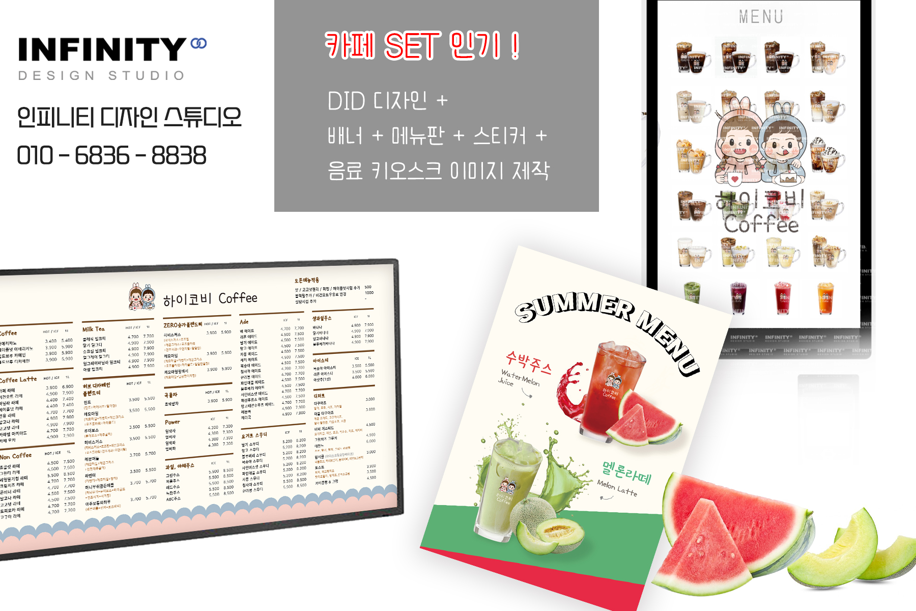안녕하세요, 디자인, 제작 전문인피니티 디자인 스튜디오 입니다 :)오늘은 DID 모니터 디자인,LED 모니터 메뉴판 디자인 소식포스팅 드려요 ! 카페에 여러대의 모니터를 나란히 두어사용하는 매장
