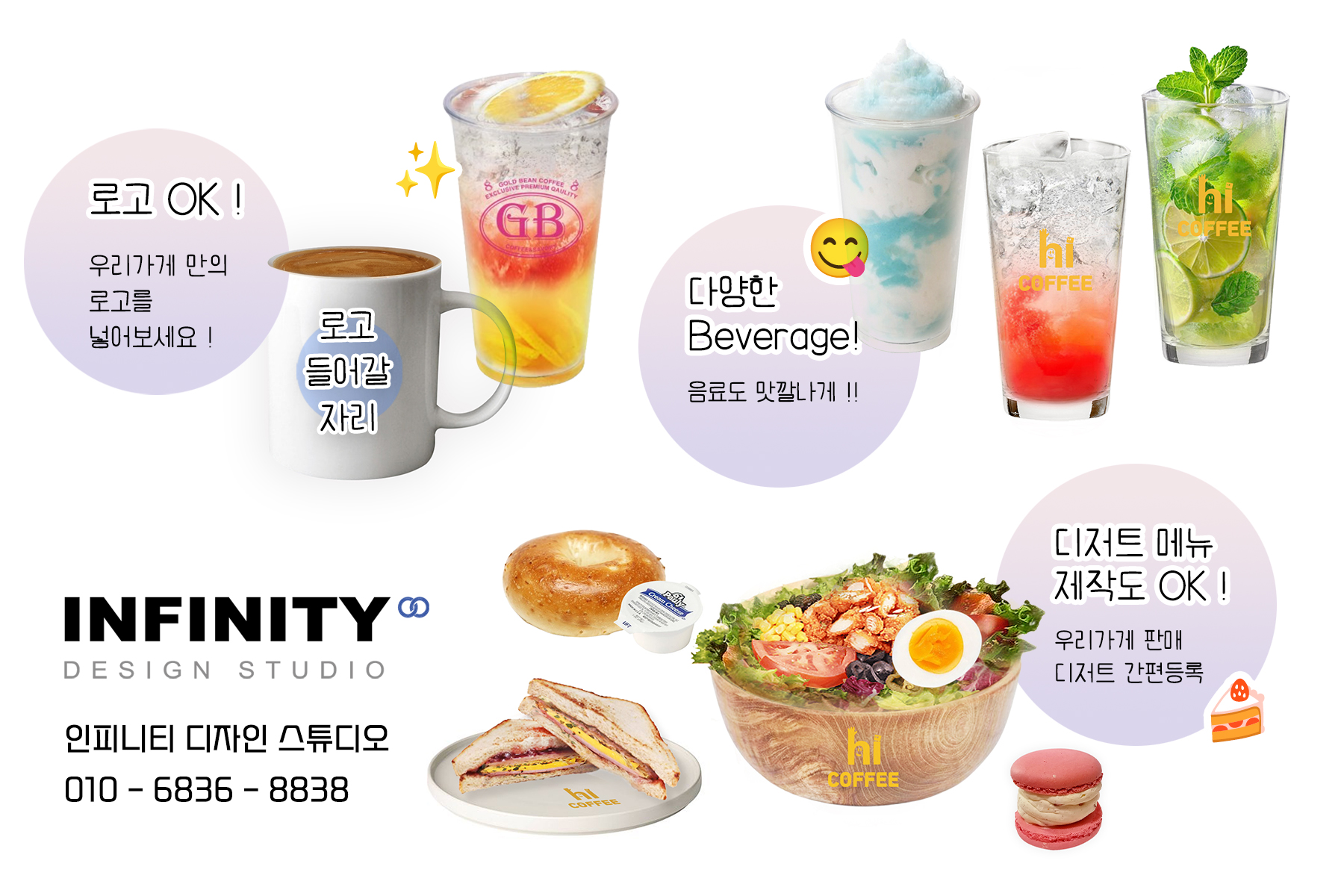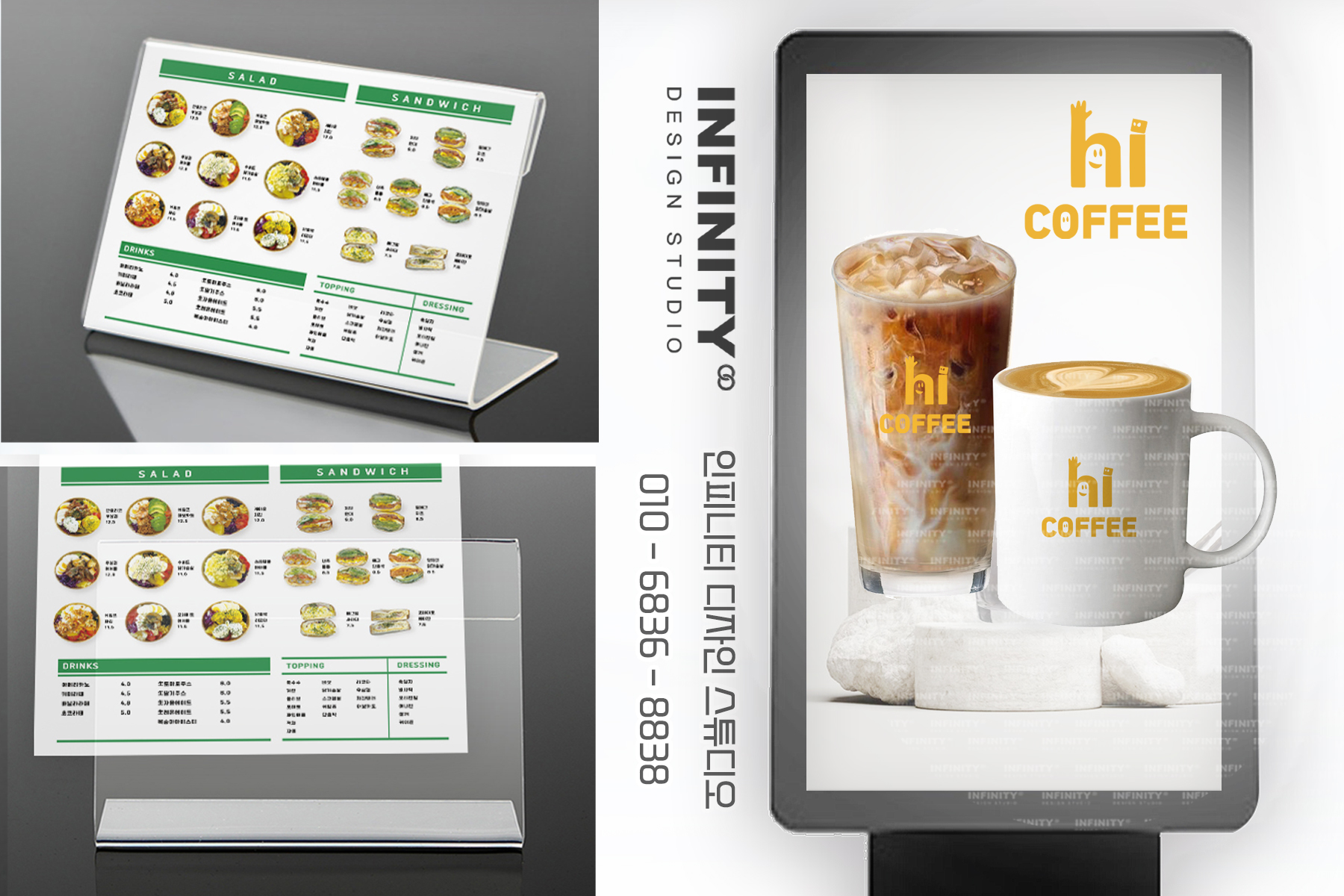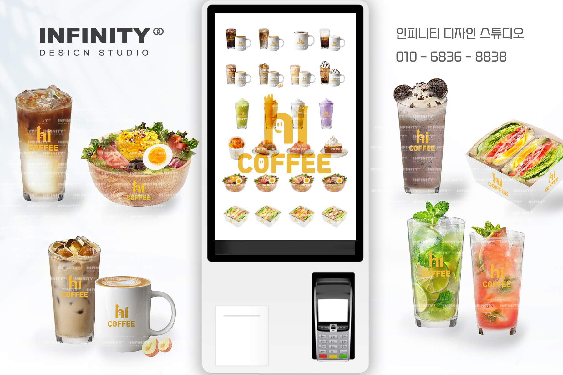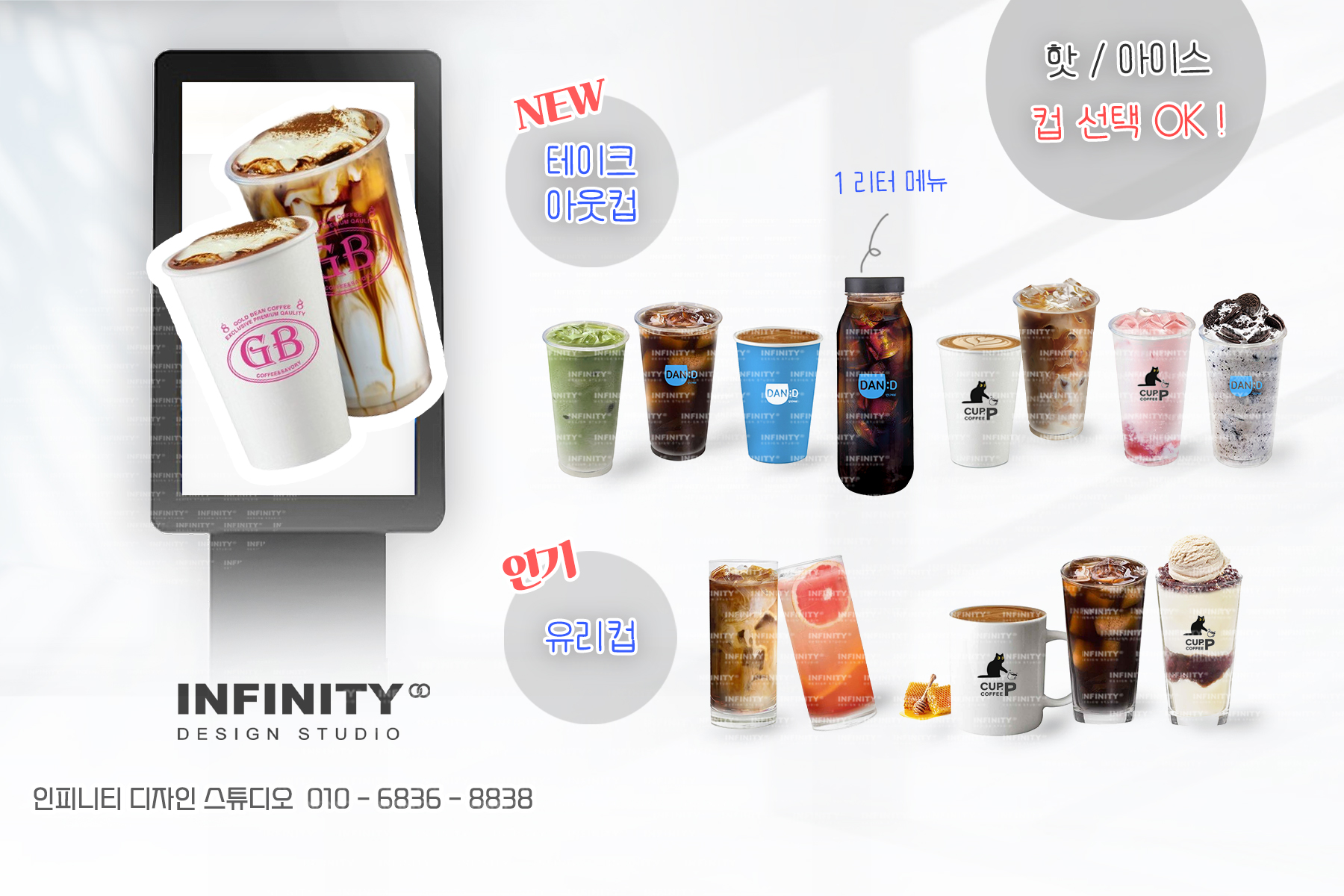 안녕하세요, 디자인, 제작 전문인피니티 디자인 스튜디오 입니다. 오늘은 카페 오픈 준비로 진행된카페 키오스크 메뉴이미지 제작과 배너, DID, 메뉴판 등 다양한 품목 진행소식 드립니다 :) 먼저
