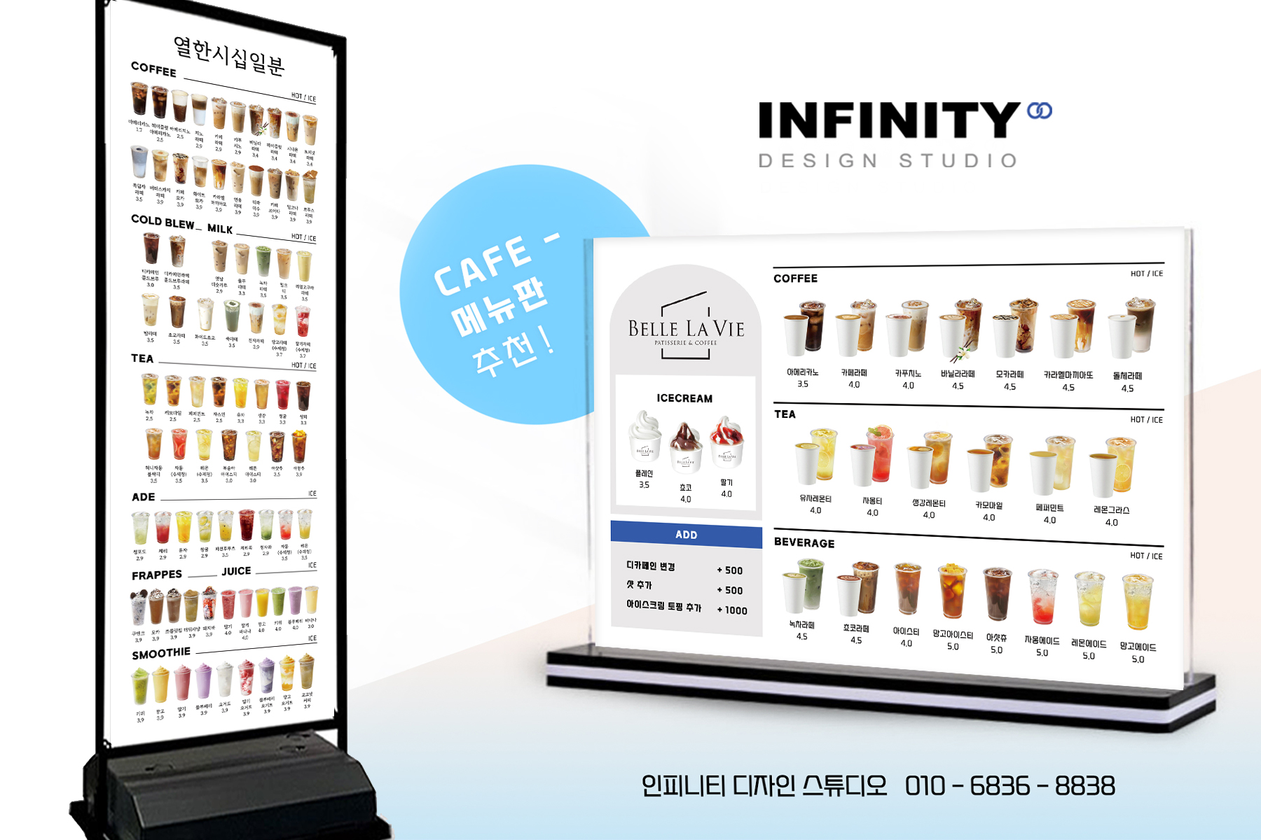 여러분 안녕하세요!디자인, 제작 전문인피니티 디자인 스튜디오 입니다 :)오늘은 최근 진행한카페 DID 디자인 및 메뉴판 제작소식을 전해드리려고 해요.⠀ 요즘 카페를 창업하거나 리뉴얼하시는