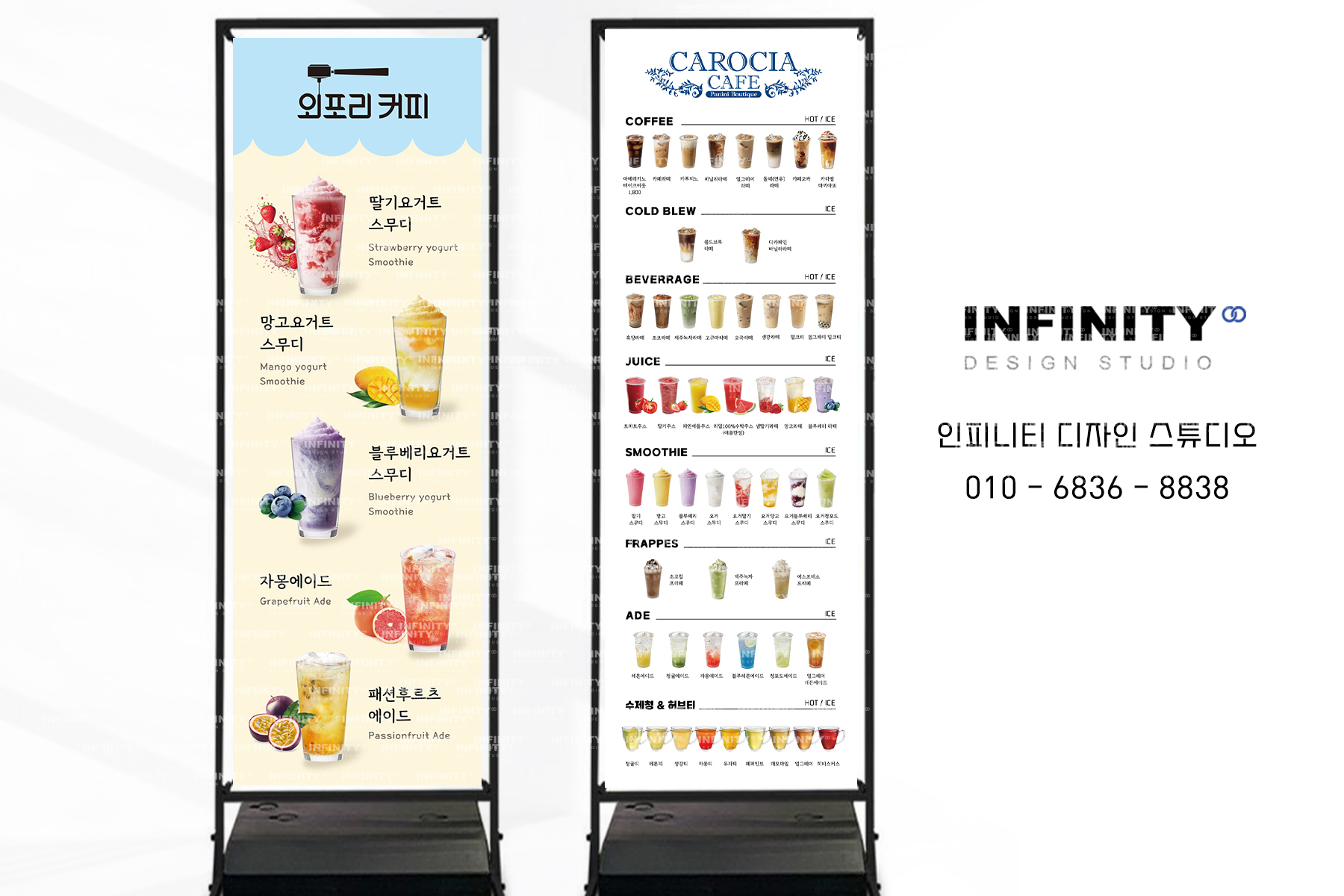 안녕하세요, 디자인, 제작 전문인피니티 디자인 스튜디오 입니다 :)많은 카페에서 하나씩 두는 필수템 !카페 메뉴판 배너 추천 포스팅 드립니다 우리카페에서 판매하는 다양한 메뉴를사진으로