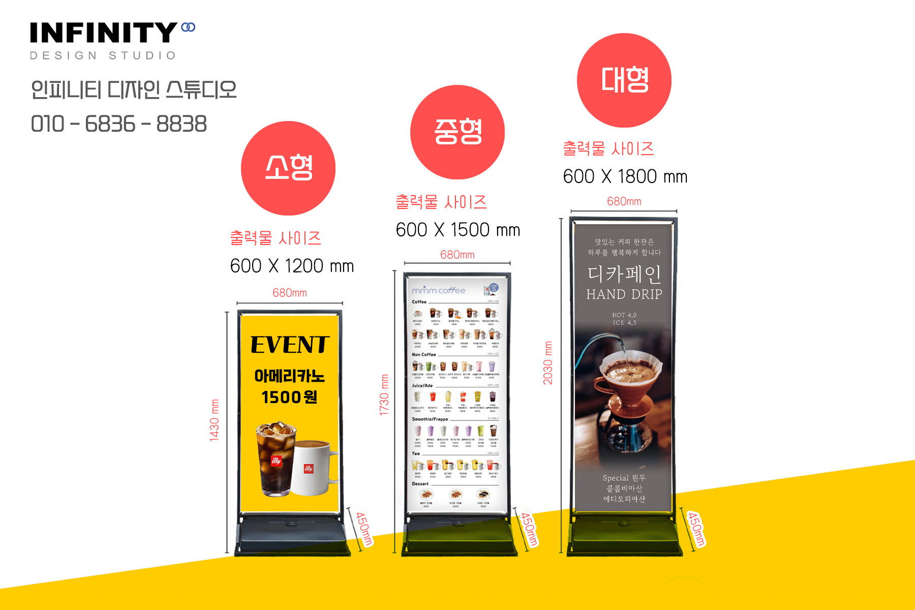 안녕하세요, 디자인, 제작 전문인피니티 디자인 스튜디오 입니다.오늘은 카페 메뉴판 배너 제작 소식포스팅 드립니다 :) 커피 / 음료 / 샌드위치 / 샐러드 등판매 메뉴를 모두 담은메뉴판 배너와