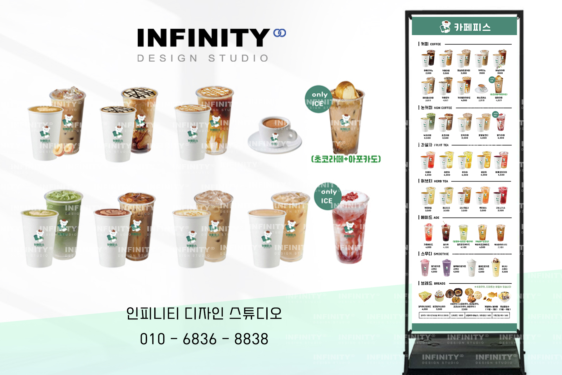 여러분 안녕하세요!디자인, 제작 전문인피니티 디자인 스튜디오 입니다 :)오늘은 최근 진행한카페 DID 디자인 및 메뉴판 제작소식을 전해드리려고 해요.⠀ 요즘 카페를 창업하거나 리뉴얼하시는