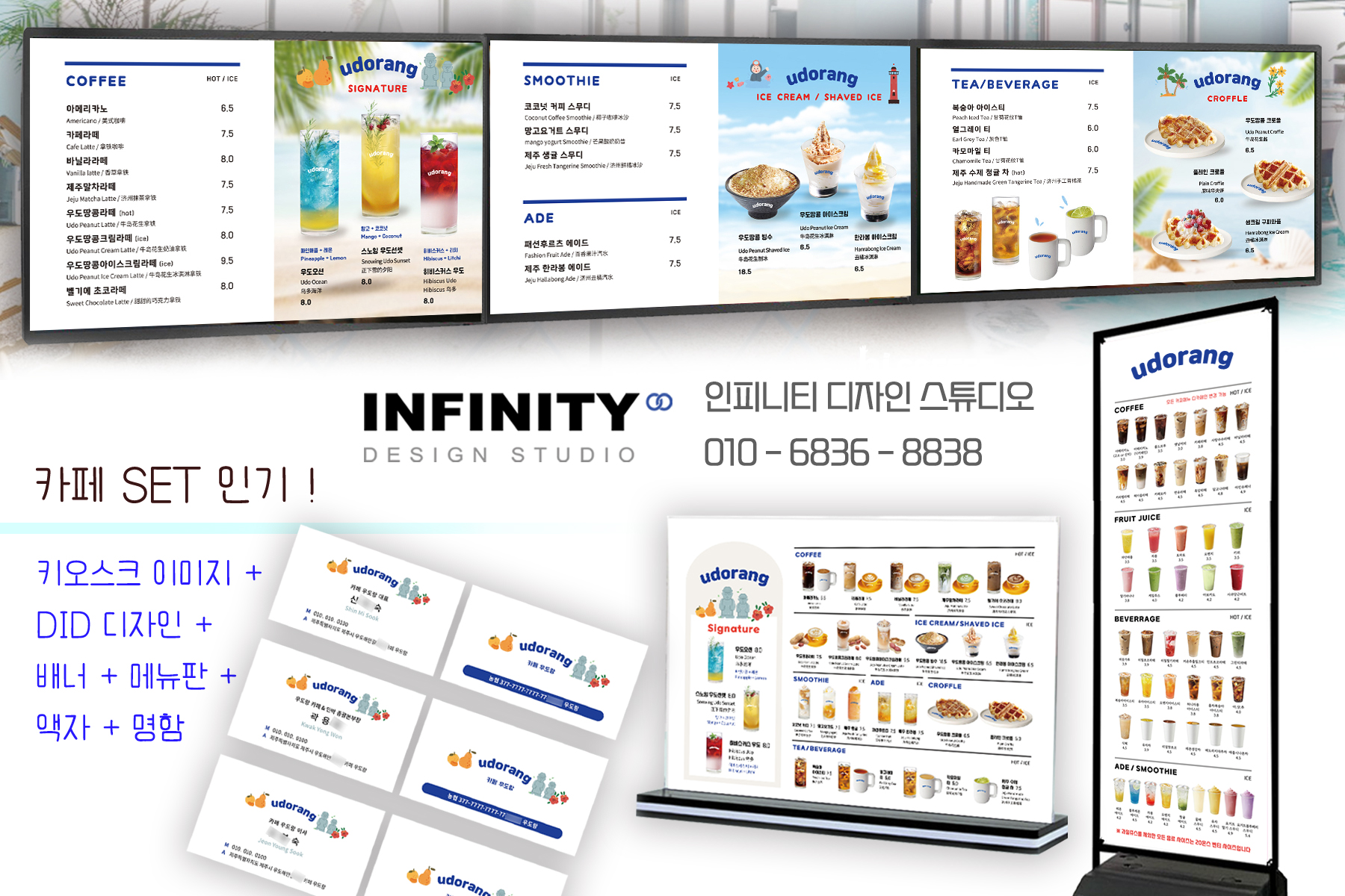 여러분 안녕하세요!디자인, 제작 전문인피니티 디자인 스튜디오 입니다 :)오늘은 최근 진행한카페 DID 디자인 및 메뉴판 제작소식을 전해드리려고 해요.⠀ 요즘 카페를 창업하거나 리뉴얼하시는