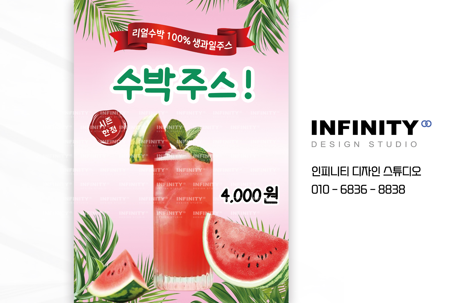 수박주스 홍보를 위한 홍보물로 맞춤 진행해드렸어요 :)