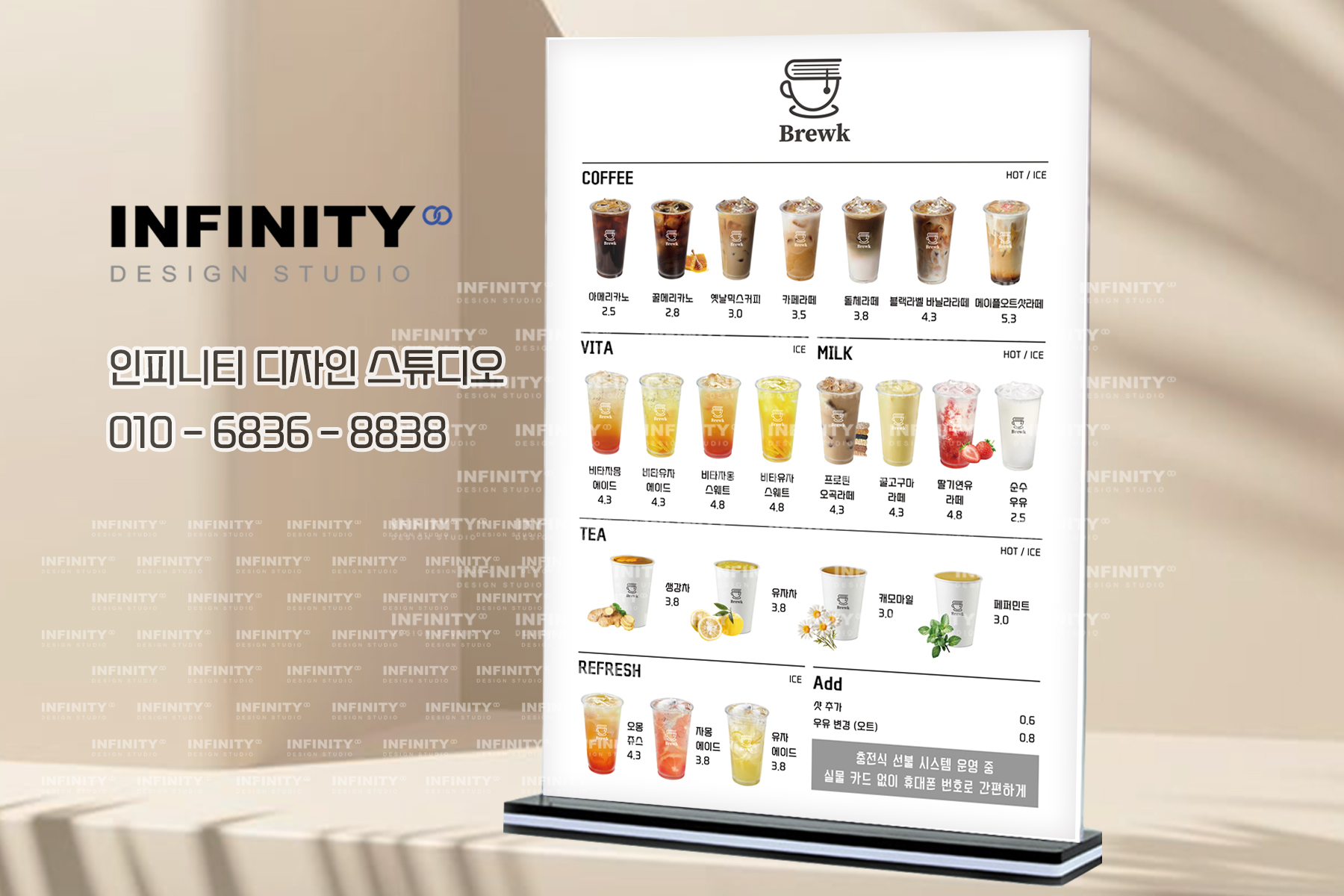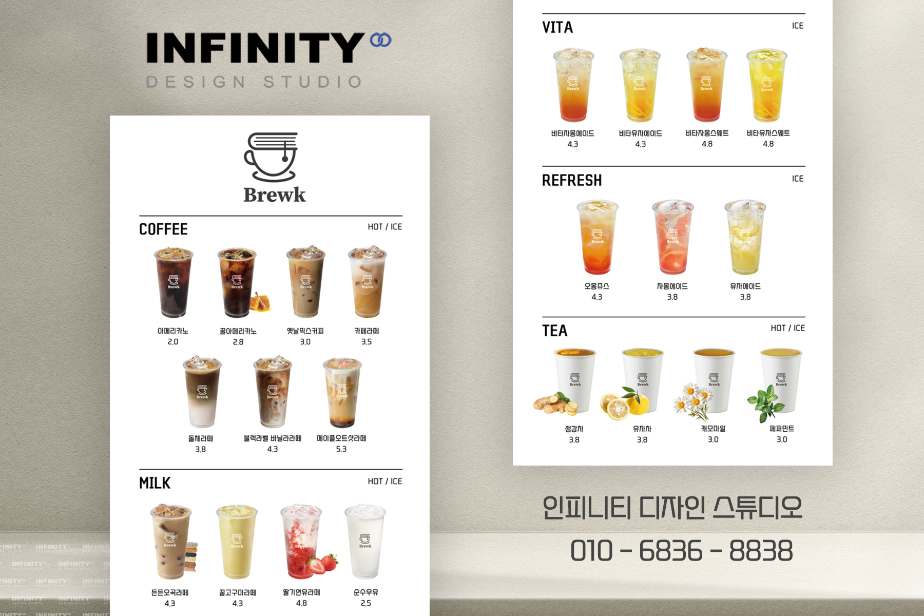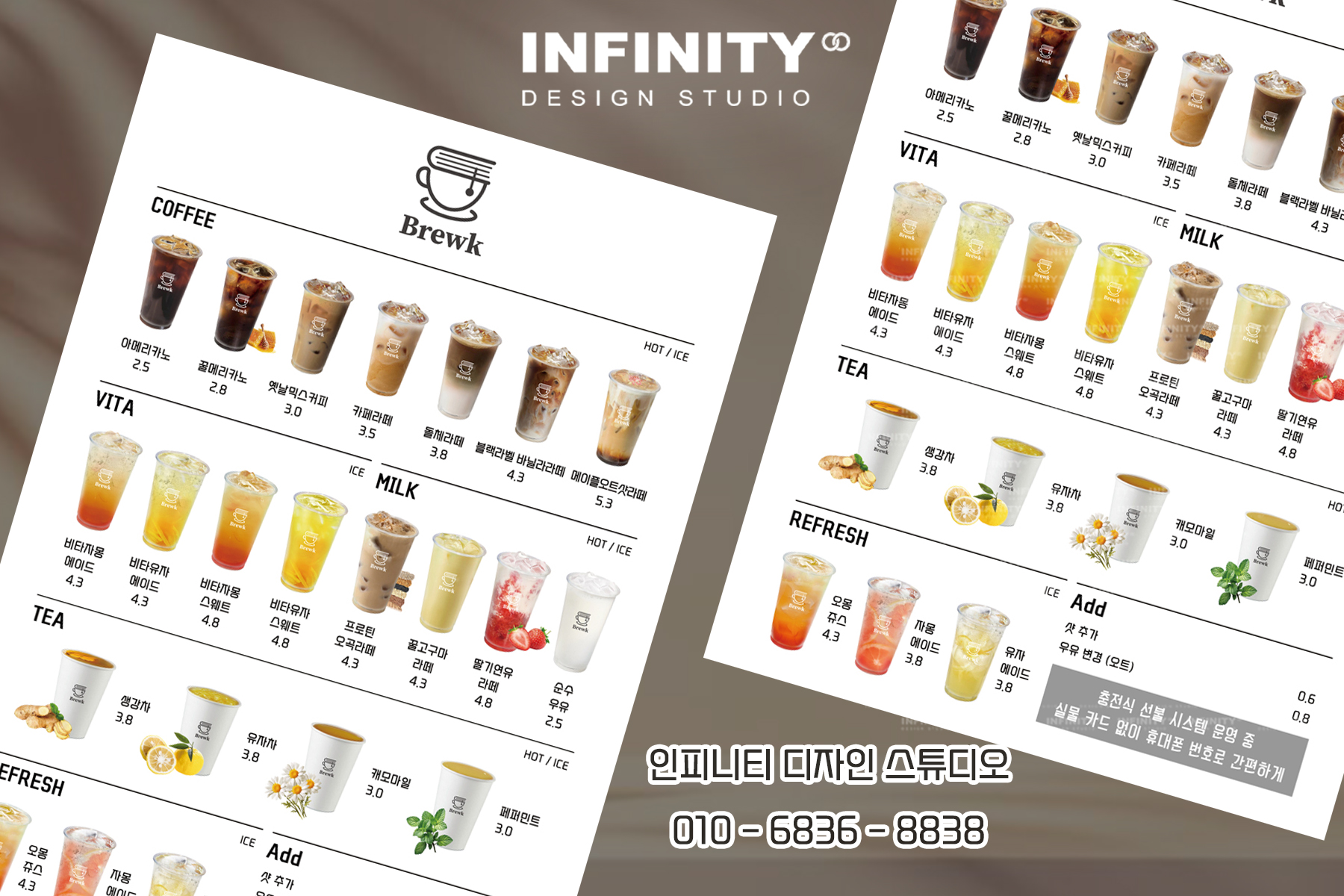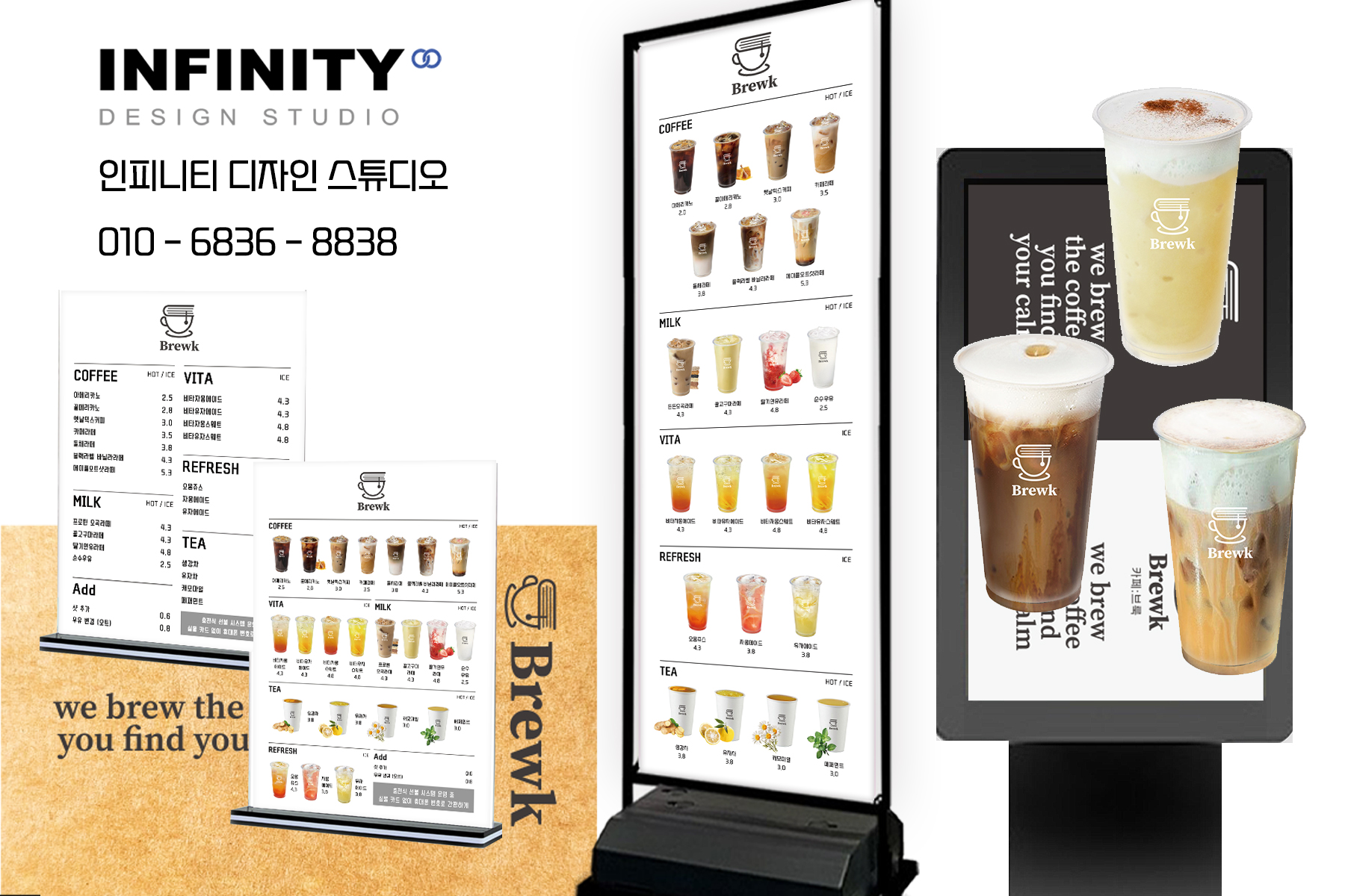 여러분 안녕하세요!디자인, 제작 전문인피니티 디자인 스튜디오 입니다 :)오늘은 최근 진행한카페 DID 디자인 및 메뉴판 제작소식을 전해드리려고 해요.⠀ 요즘 카페를 창업하거나 리뉴얼하시는