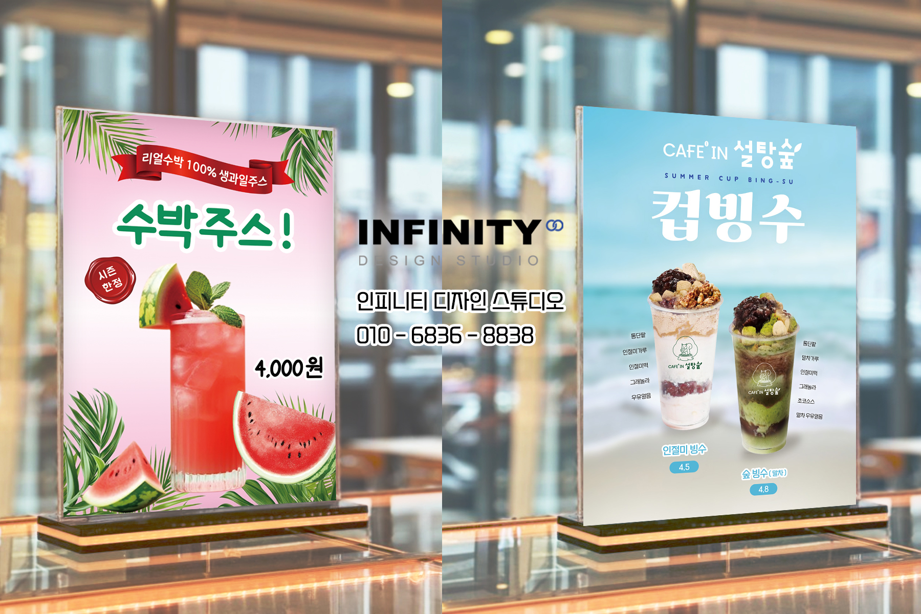 안녕하세요, 디자인, 제작 전문인피니티 디자인 스튜디오 입니다오늘은 카페 메뉴판 배너 / 아크릴 메뉴판세트 제작 소식 포스팅 드립니다 깔끔하고 통일성 있는 구성으로디자인 / 제작 해드