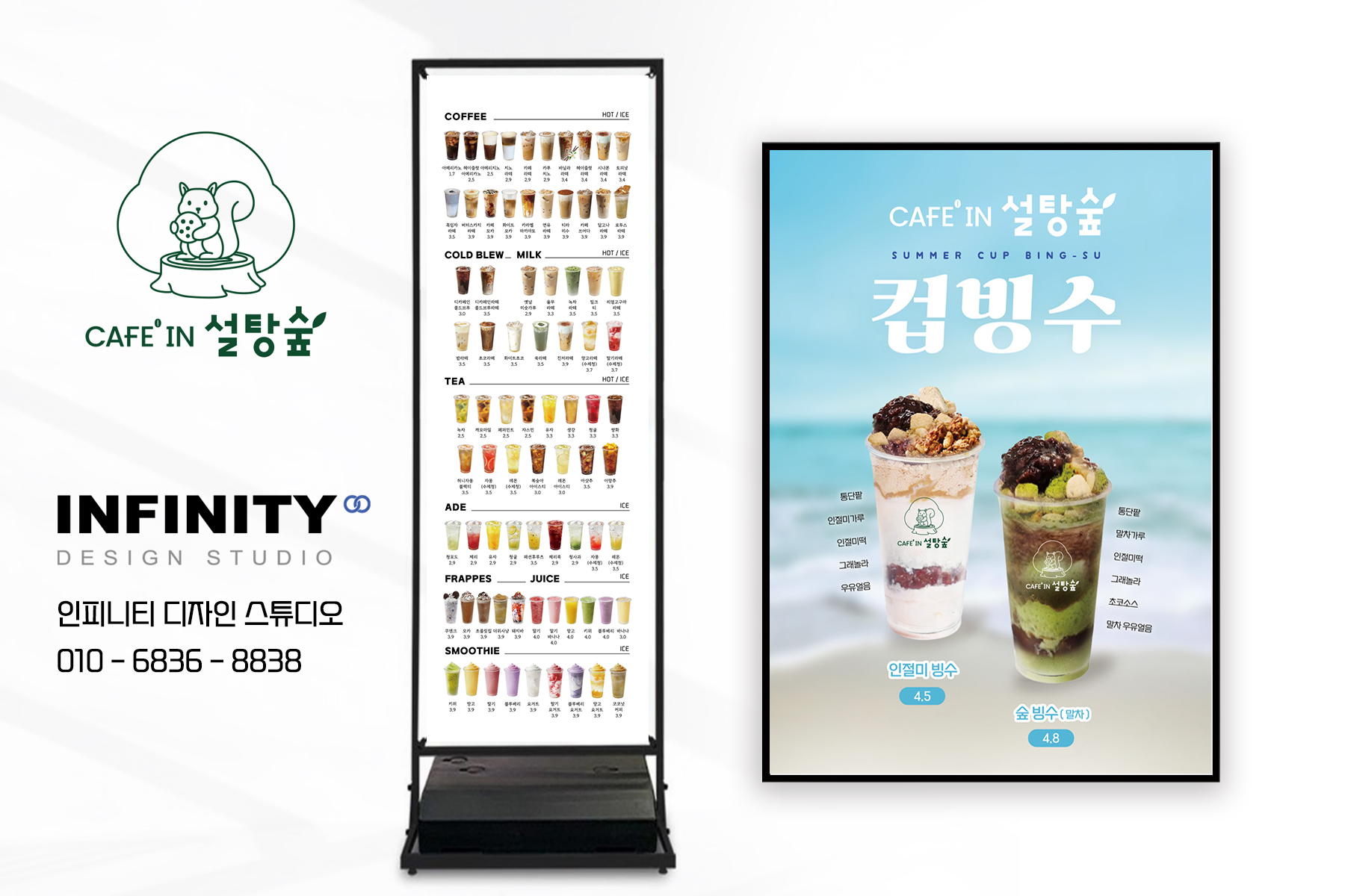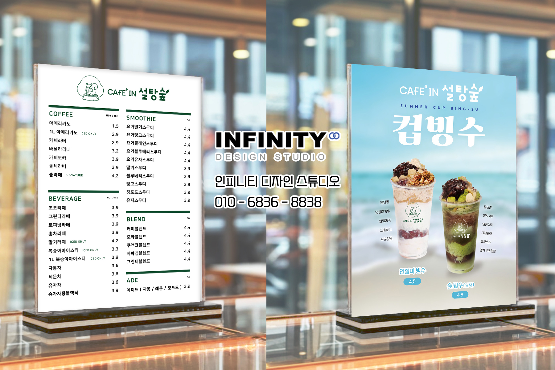 여러분 안녕하세요!디자인, 제작 전문인피니티 디자인 스튜디오 입니다 :)오늘은 최근 진행한카페 DID 디자인 및 메뉴판 제작소식을 전해드리려고 해요.⠀ 요즘 카페를 창업하거나 리뉴얼하시는