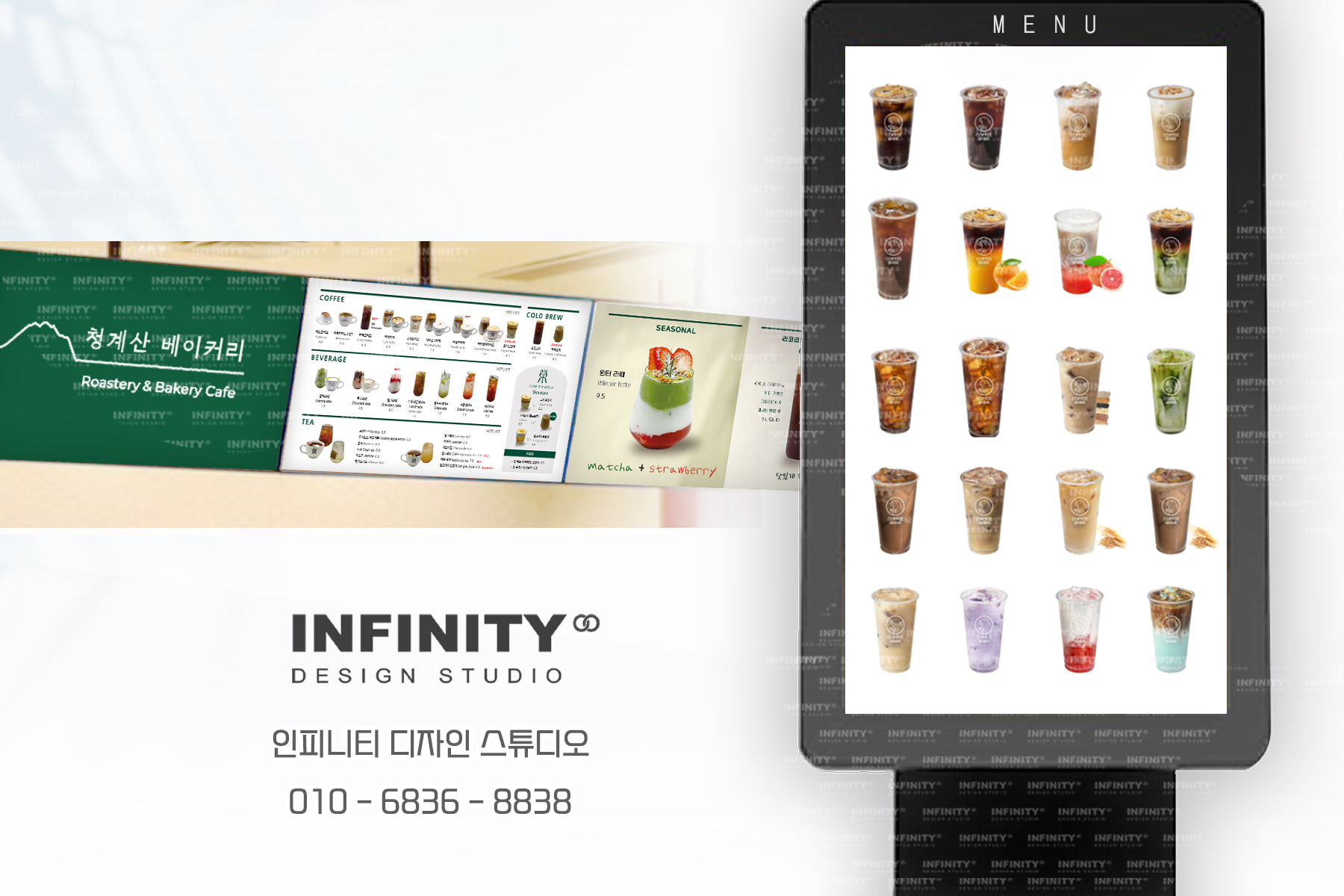 안녕하세요, 디자인, 제작 전문인피니티 디자인 스튜디오 입니다 :)카페 오픈준비중, 운영중 필요한 홍보물추천 포스팅 드립니다 키오스크 사진세트와메뉴판, 배너 등 필요한 홍보물도함께 진