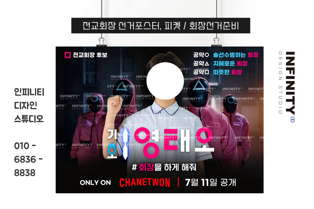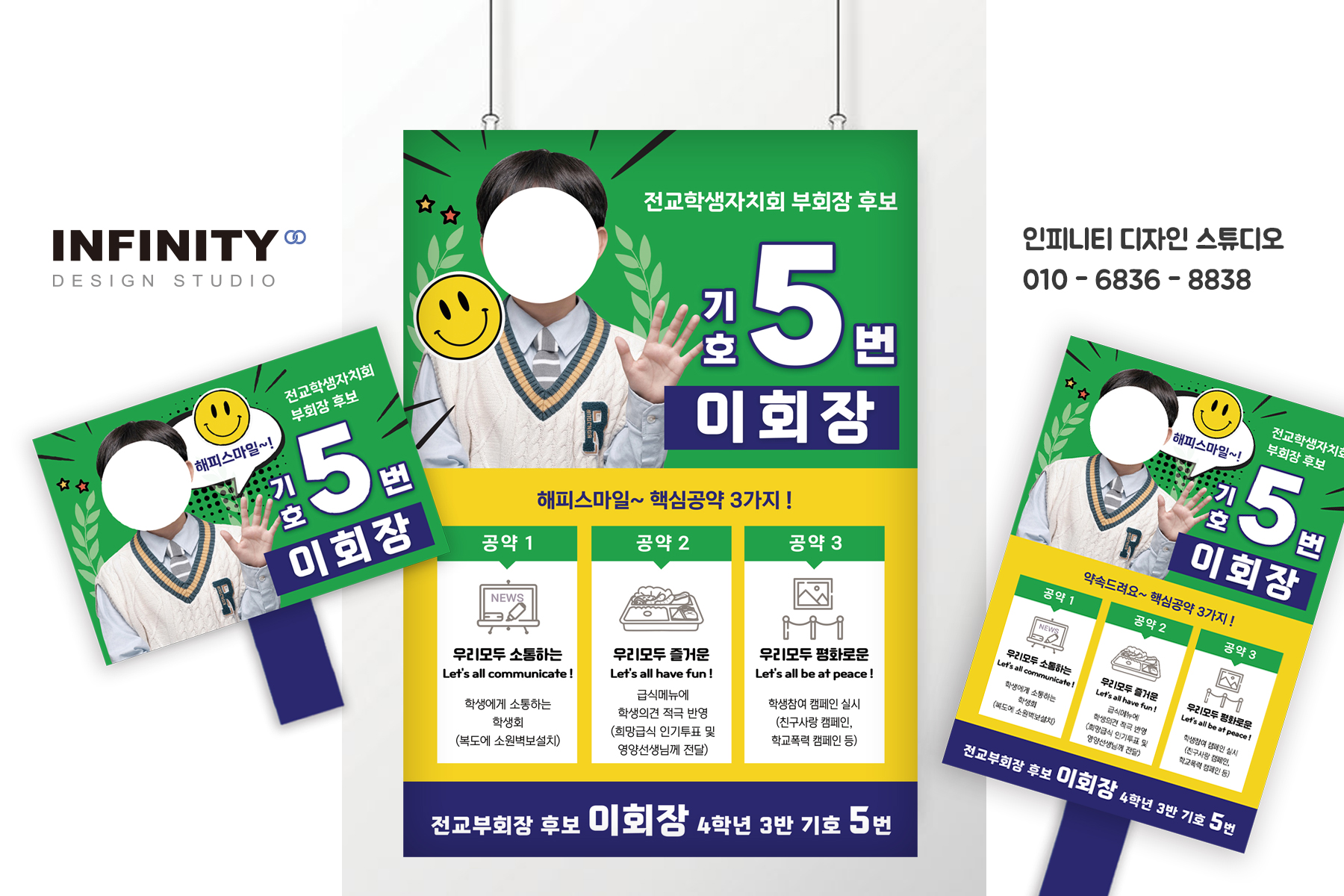 안녕하세요, 디자인·제작 전문 인피니티 디자인 스튜디오입니다 😊전교회장 선거 준비로 한창 바쁘신가요?선거 포스터와 피켓 제작,디자인부터 인쇄, 배송까지 한 번에 해결해 드립니다. 전교