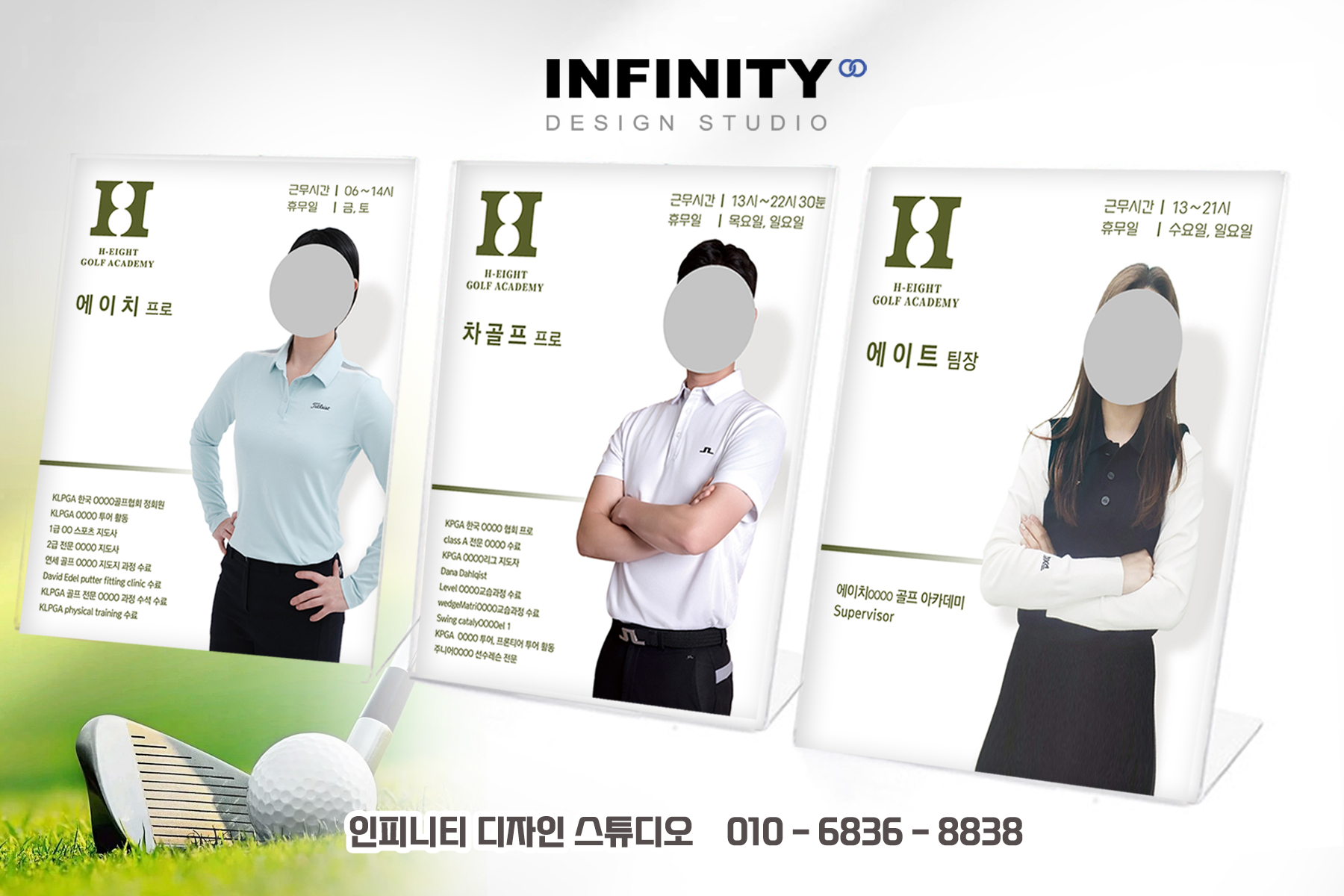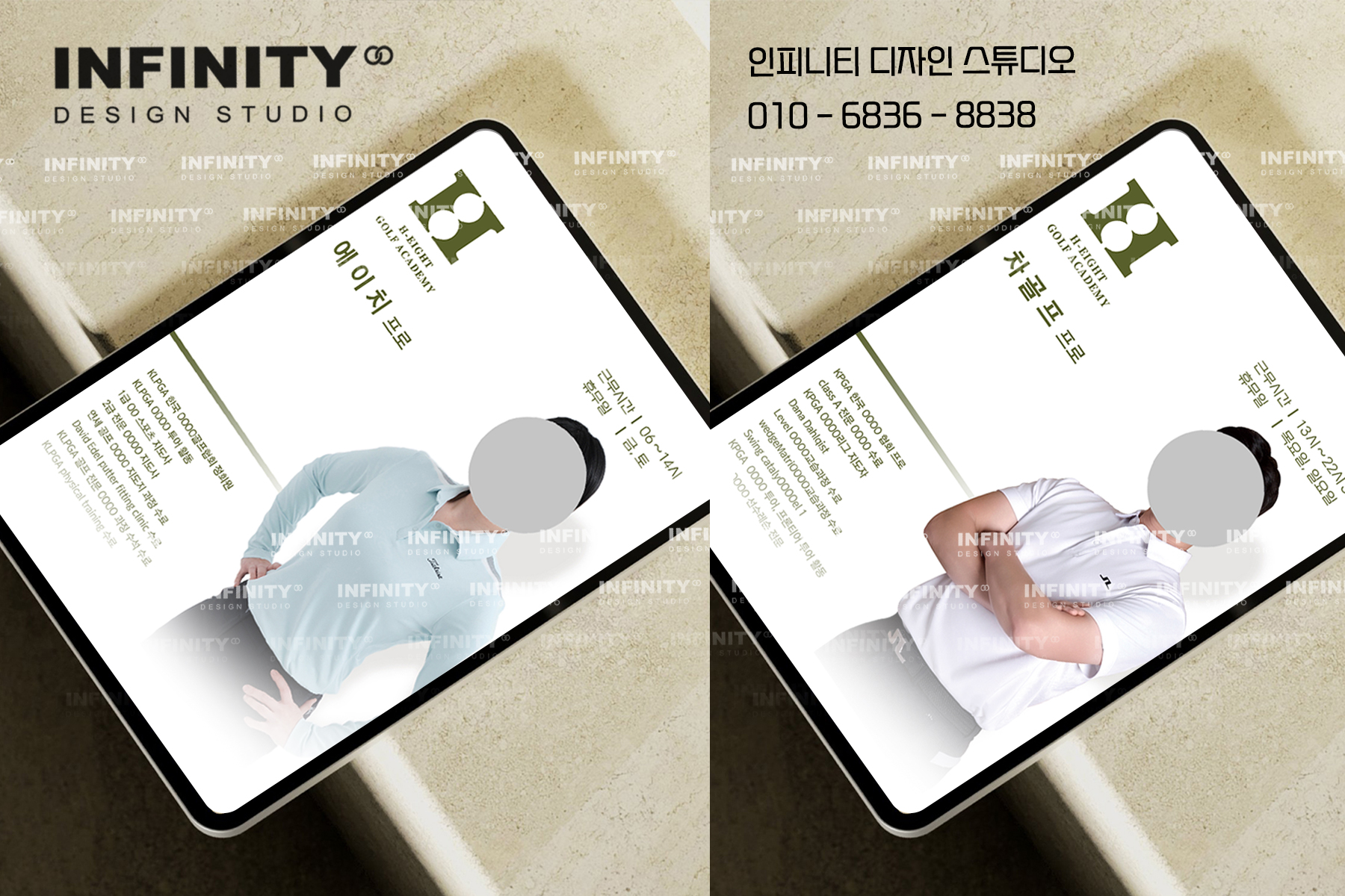 안녕하세요, 디자인, 제작 전문인피니티 디자인 스튜디오 입니다 오늘은 골프장, 실내골프장에서의뢰주신 홍보물로명함, 레슨표, 시간표, 프로필 배너 등디자인 + 제작 소식드립니다 영상 먼저