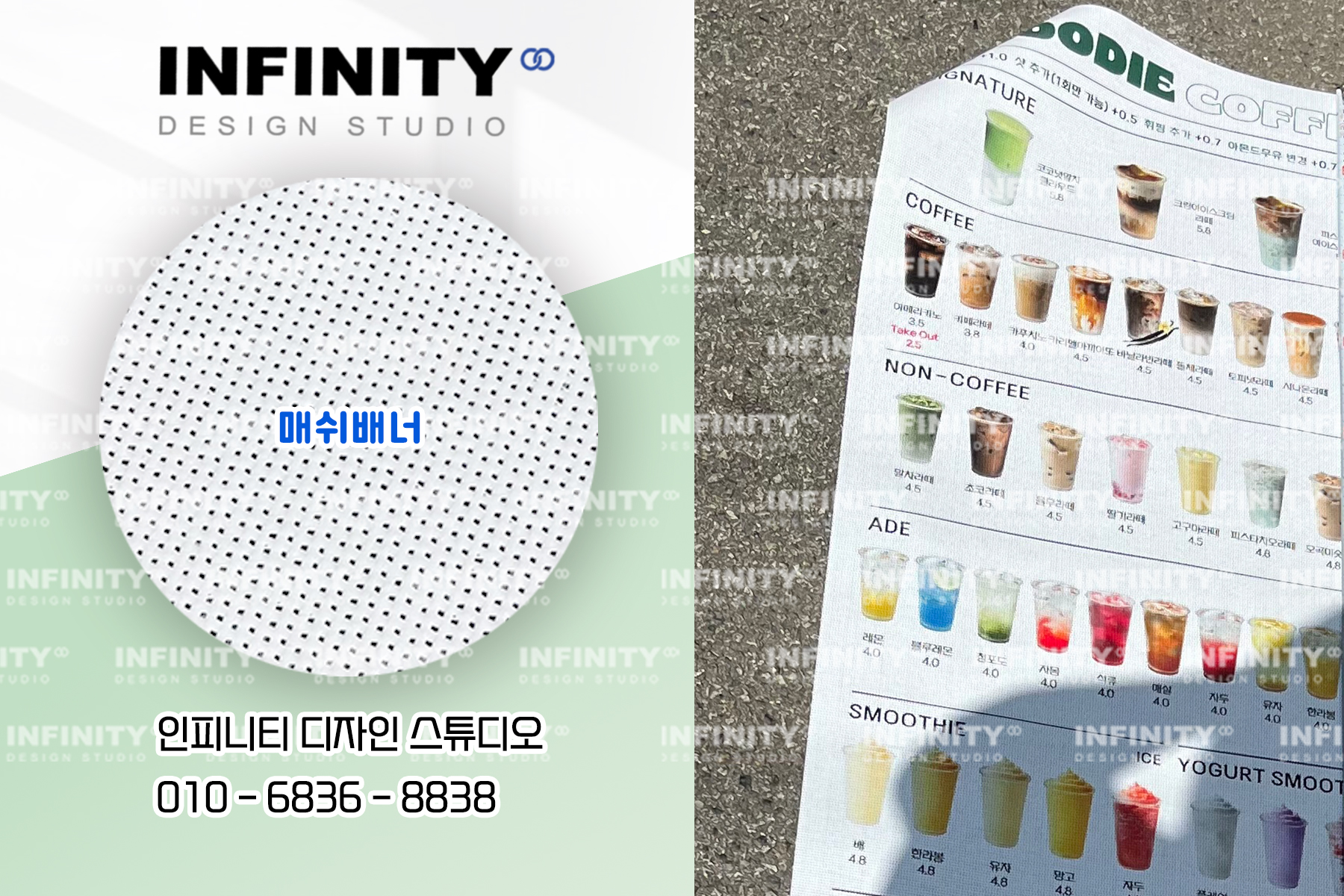안녕하세요, 디자인, 제작 전문인피니티 디자인 스튜디오 입니다 :)카페 오픈준비중, 운영중 필요한 홍보물추천 포스팅 드립니다 키오스크 사진세트와메뉴판, 배너 등 필요한 홍보물도함께 진