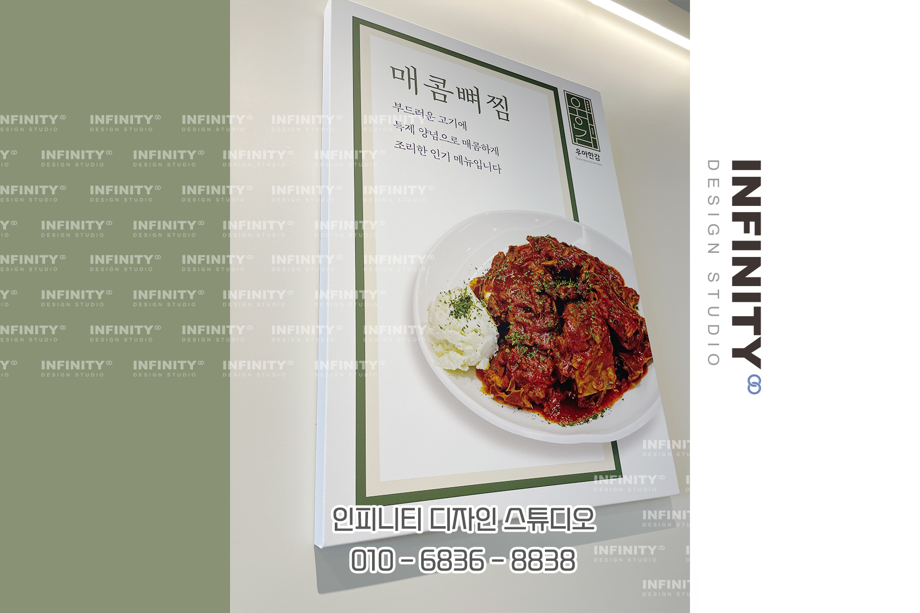 안녕하세요, 디자인, 제작 전문인피니티 디자인 스튜디오 입니다 :)오늘은 한식 음식점 액자 제작 소식포스팅 드립니다 깔끔한 메뉴 사진을 담아우리매장과 우리 브랜드에 어울리는디자인으로