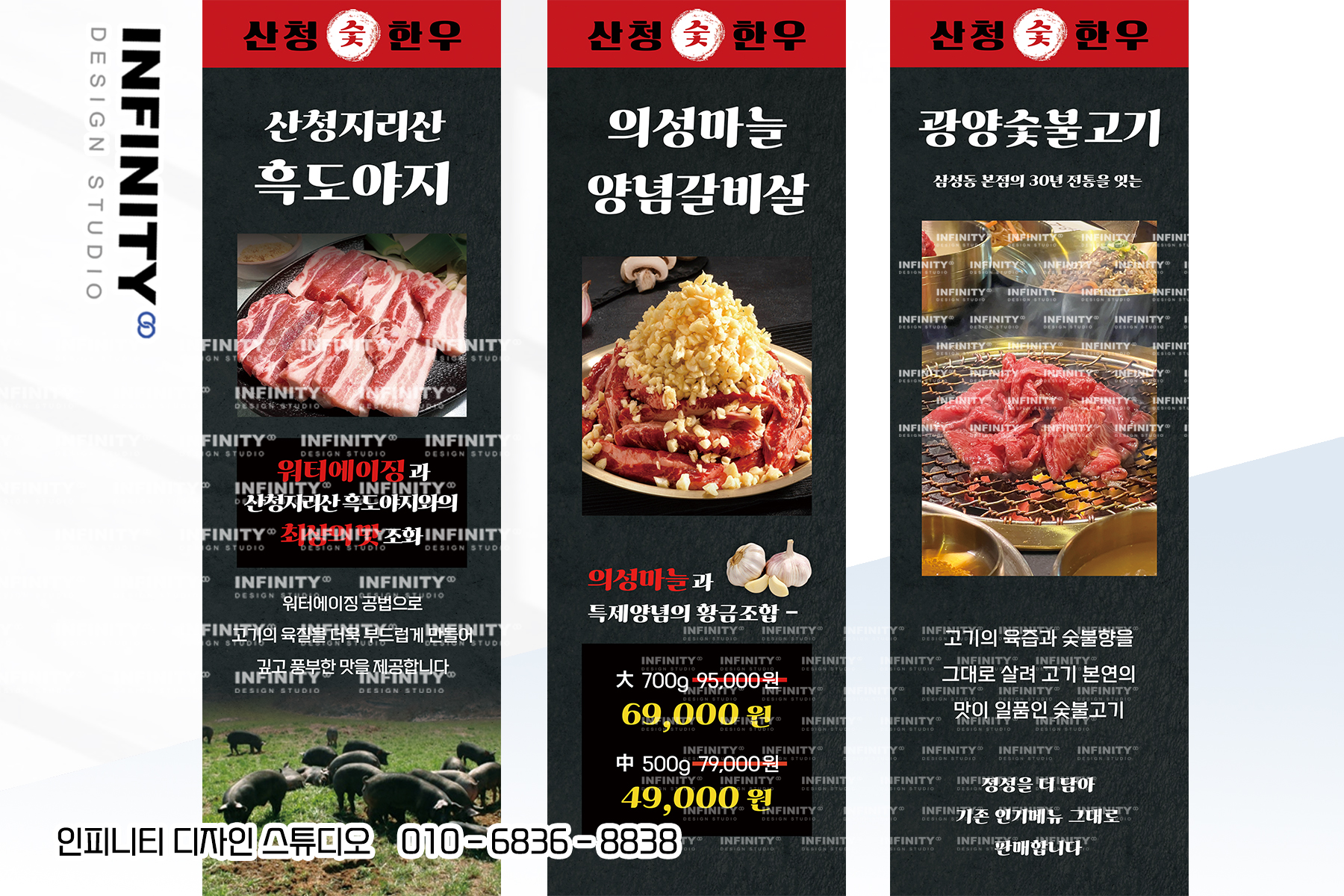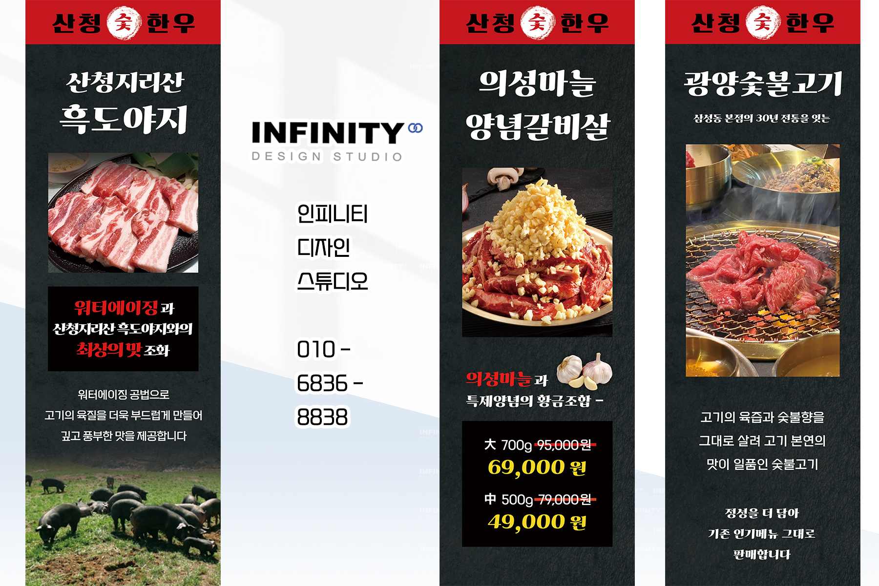 안녕하세요, 디자인, 제작 전문 인피니티 디자인 스튜디오 입니다 :) 오늘은 고기집 오픈 준비로 진행된 다...