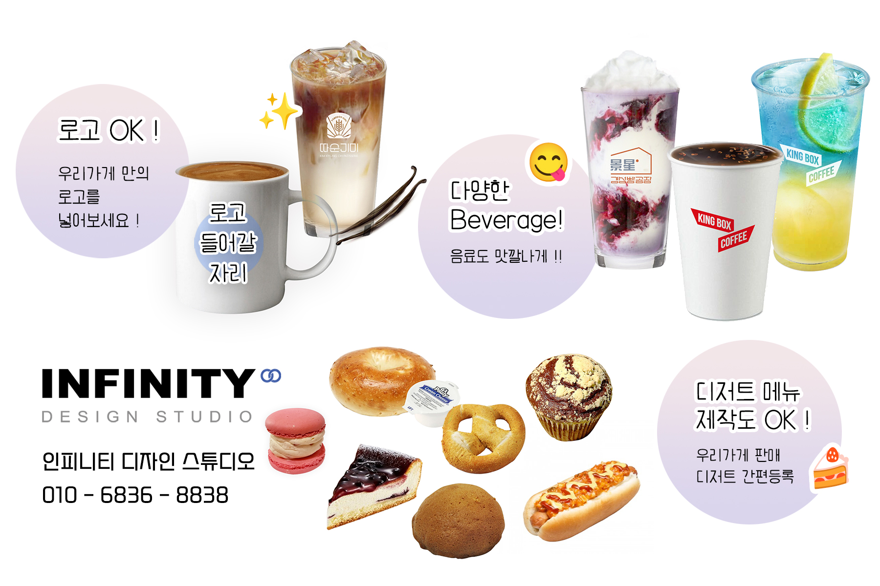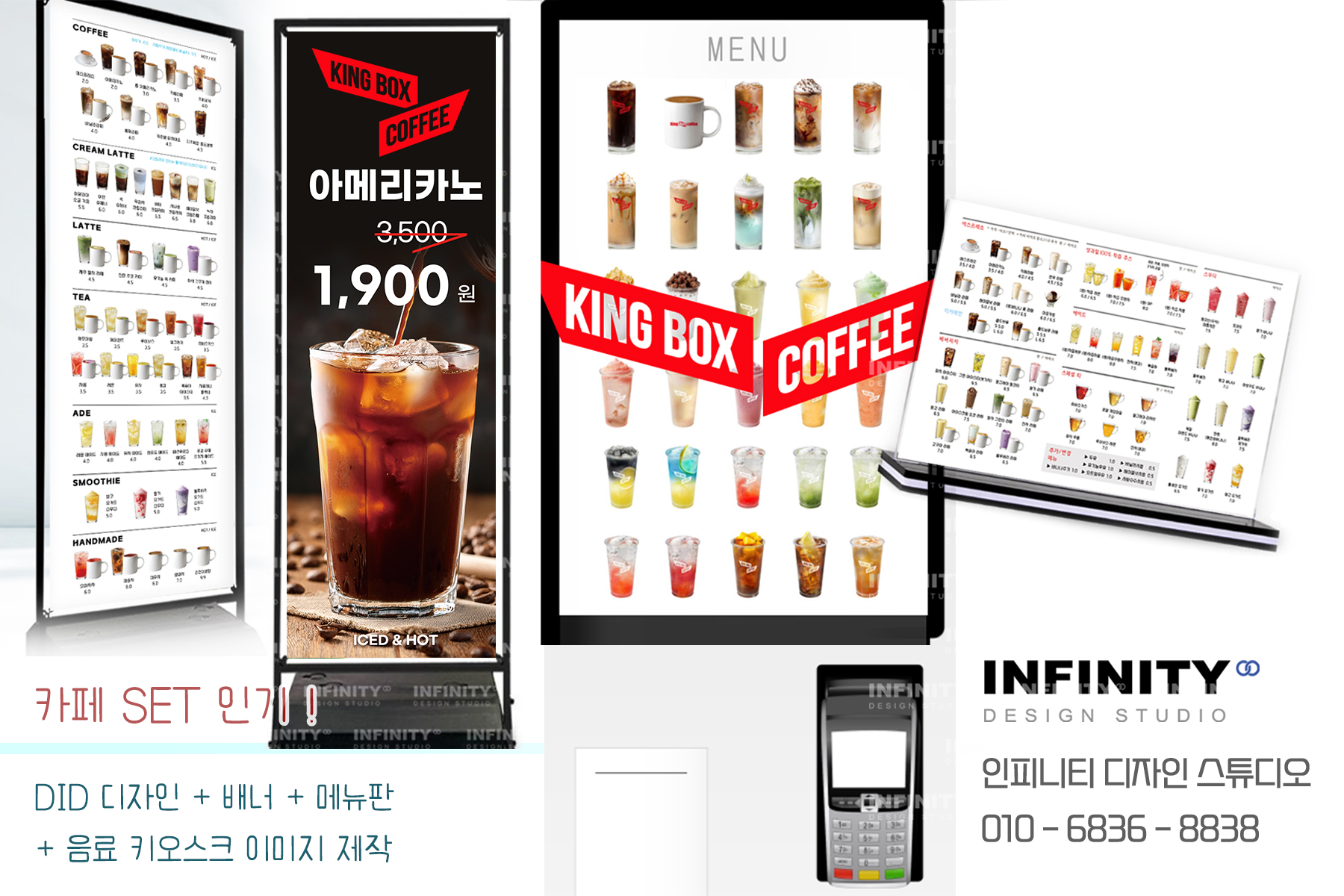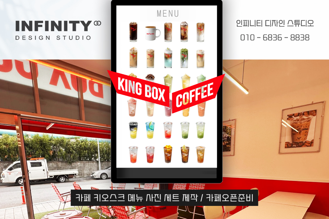 안녕하세요, 디자인, 제작 전문인피니티 디자인 스튜디오 입니다 :)카페 오픈준비중, 운영중 필요한 홍보물추천 포스팅 드립니다 키오스크 사진세트와메뉴판, 배너 등 필요한 홍보물도함께 진