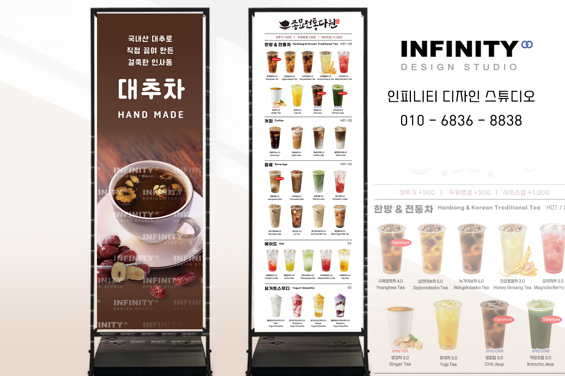안녕하세요, 디자인, 제작 전문인피니티 디자인 스튜디오 입니다 :)오늘은 카페 LED메뉴판 디자인 소식포스팅 드립니다 ! 카페 운영 중 많이 활용하는 모니터 메뉴판3개 구성으로 맞춤 디자인해