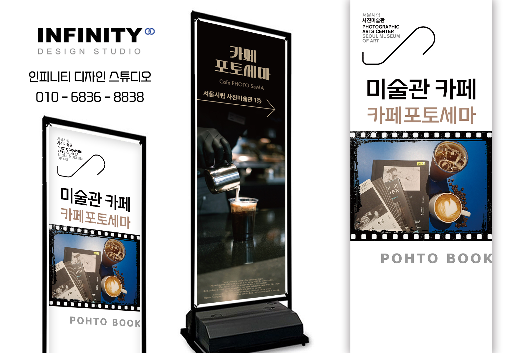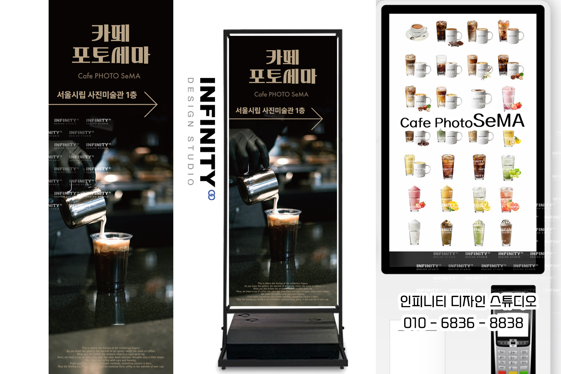 안녕하세요, 디자인, 제작 전문인피니티 디자인 스튜디오 입니다 :)오늘은 카페에서 많이 활용하는키오스크 사진세트와 명함, 메뉴판 세트디자인 + 제작 소식 포스팅 드립니다 서울 사진미술관
