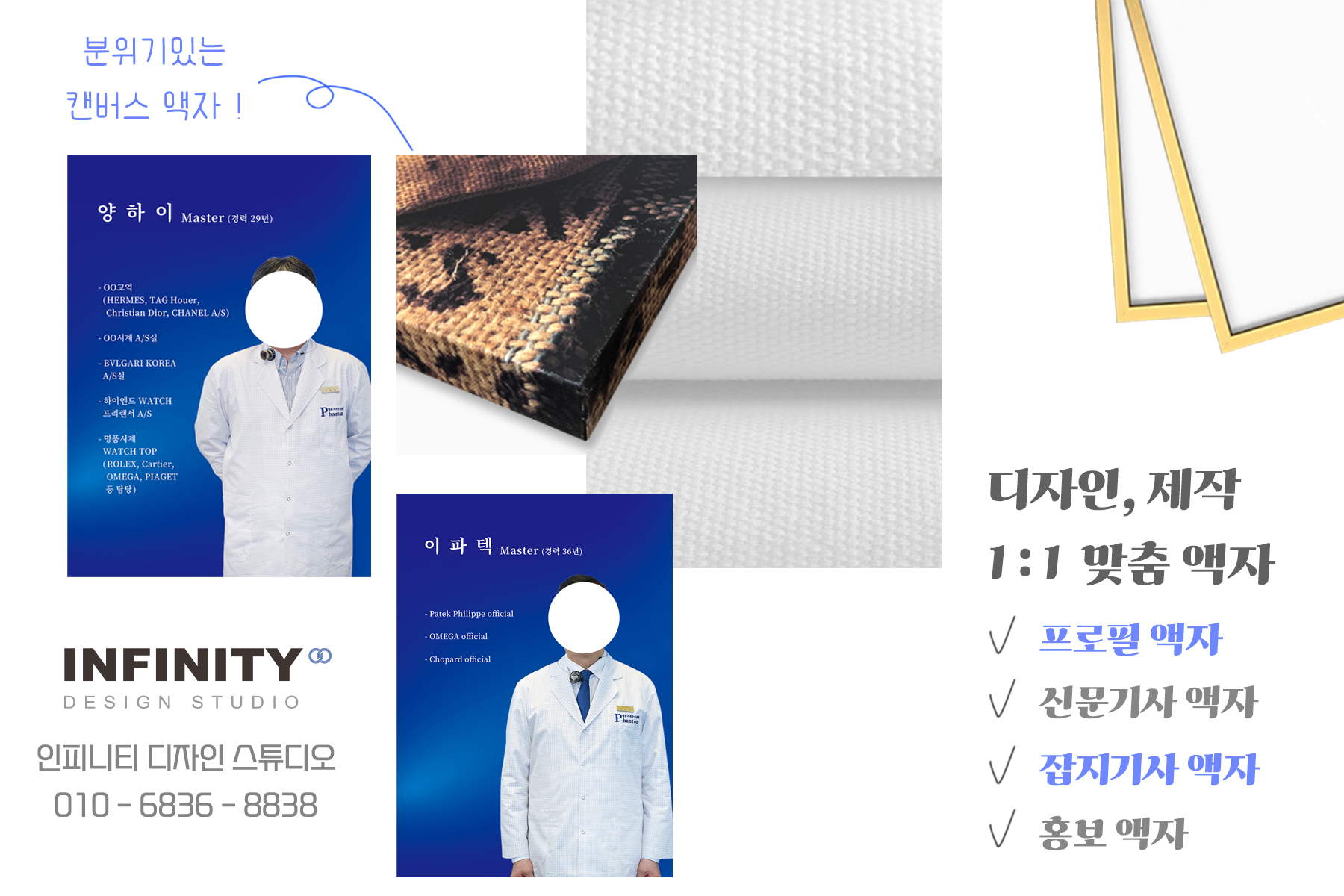 안녕하세요, 디자인, 제작 전문인피니티 디자인 스튜디오 입니다 :) 오늘은 오픈준비로 매장에 걸어둘 액자디자인 + 제작으로 진행된피부과 에스테틱 원장님 프로필 액자 제작소식 포스팅 드려