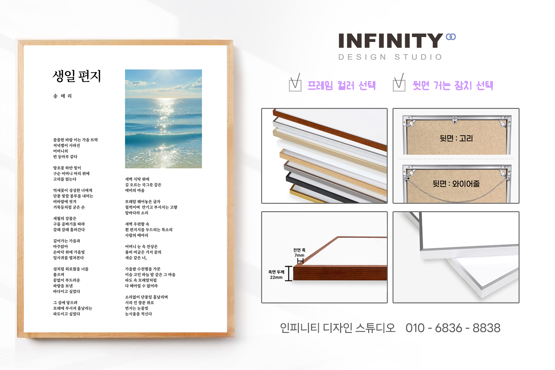 시 액자 제작, 시 디자인 액자 맞춤 제작, 우드 액자, 실버 액자, 시문학작품 액자