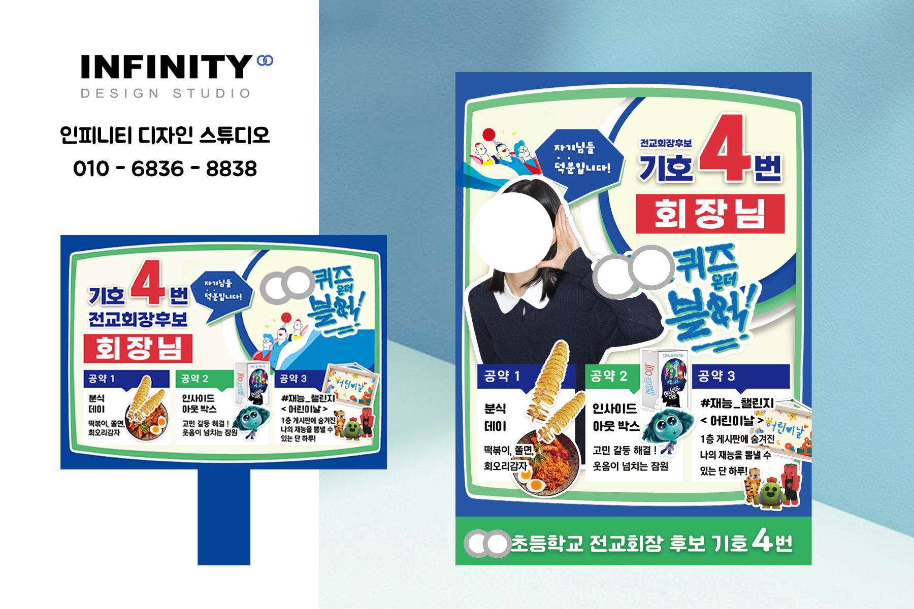 안녕하세요. 디자인 및 제작 전문 인피니티 디자인 스튜디오입니다. 이번 포스팅에서는 학생회장, 전교회장 선거에 사용되는 포스터와 피켓 제작에 대해 안내드리려고 합니다. 학교 선거 일정