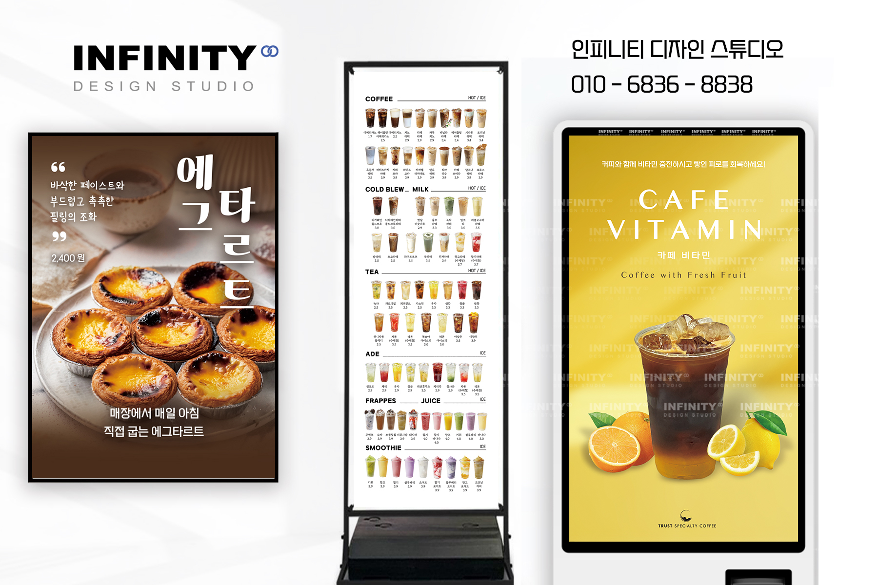 카페 메뉴판, 배너, DID, 시트지, 스티커 디자인, 제작, 카페오픈준비 추천