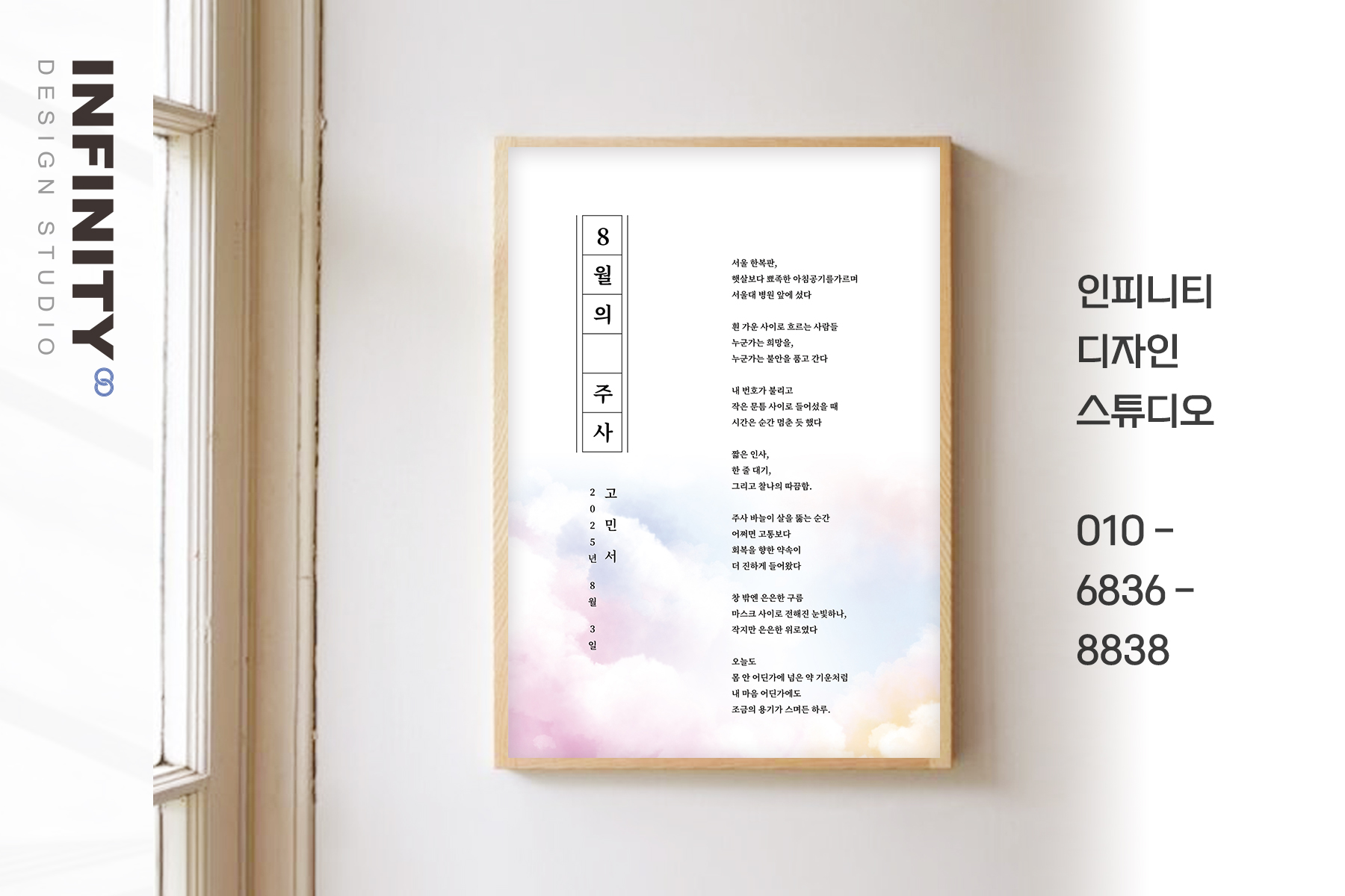 안녕하세요, 디자인, 제작 전문인피니티 디자인 스튜디오 입니다 :)오늘은 시 액자 제작 소식 포스팅준비했어요 시 작품을 걸어두고 싶으셔서디자인 + 액자 제작 의뢰해주셨습니다 :) 사이즈, 수