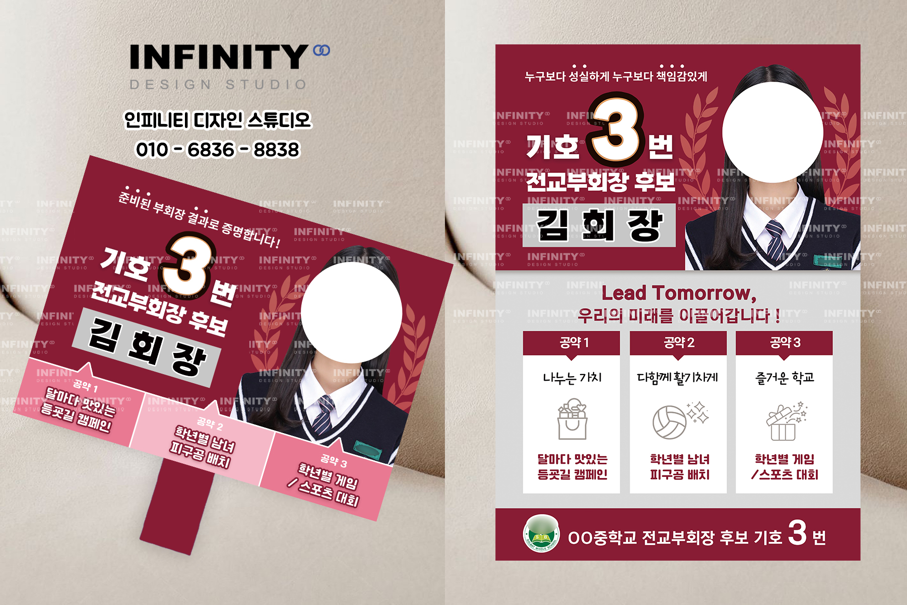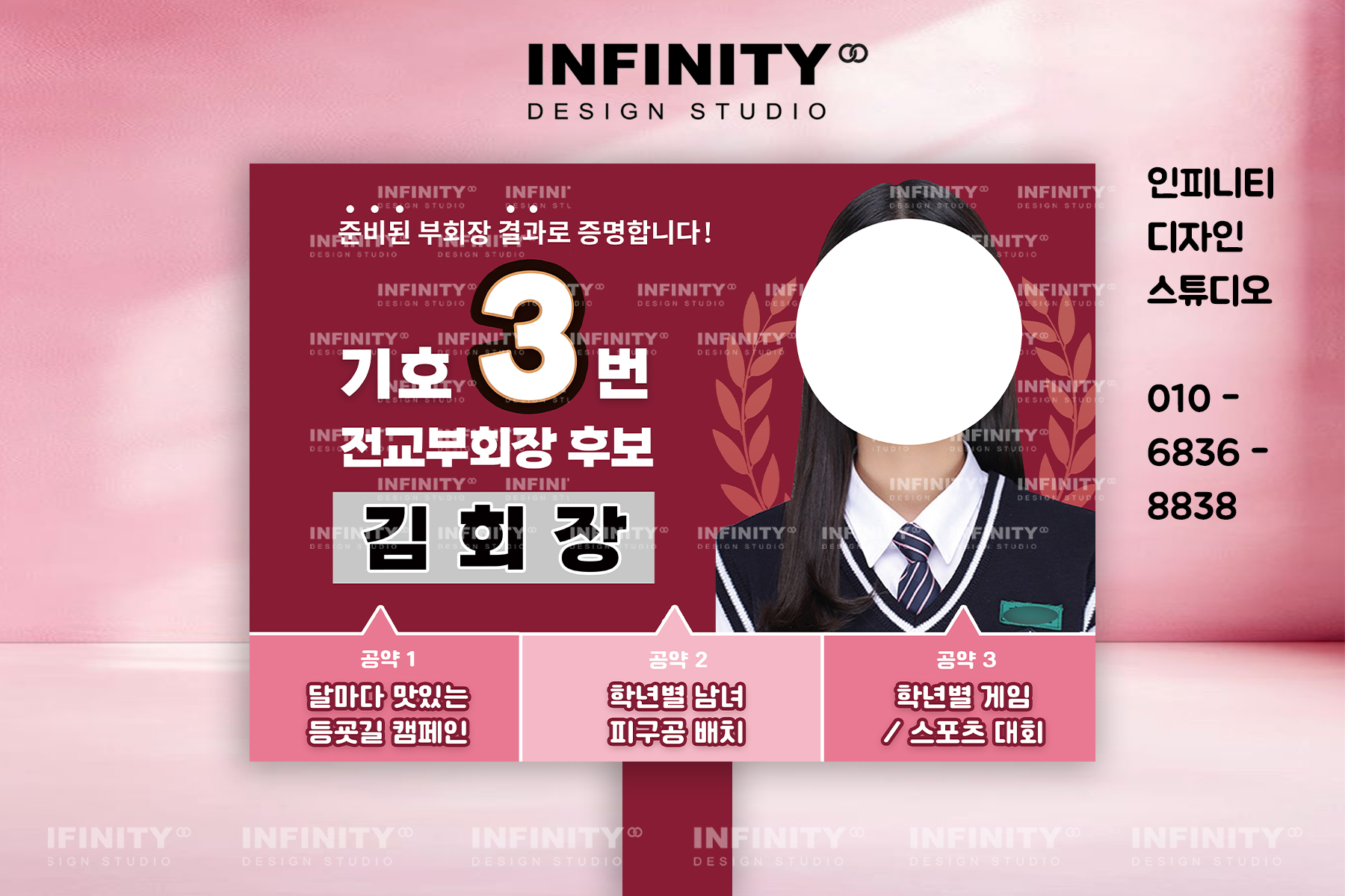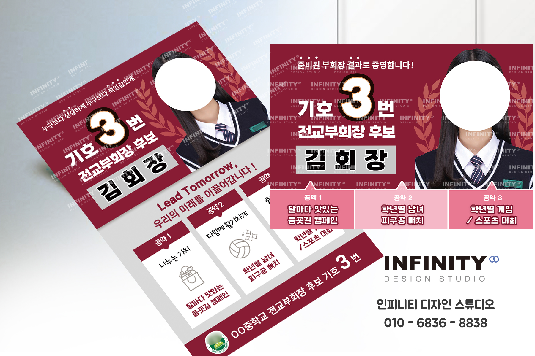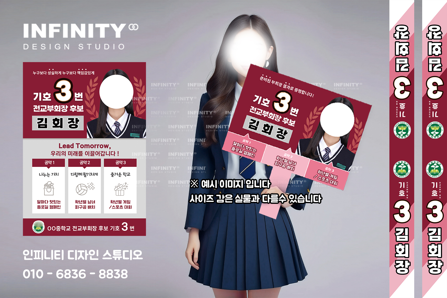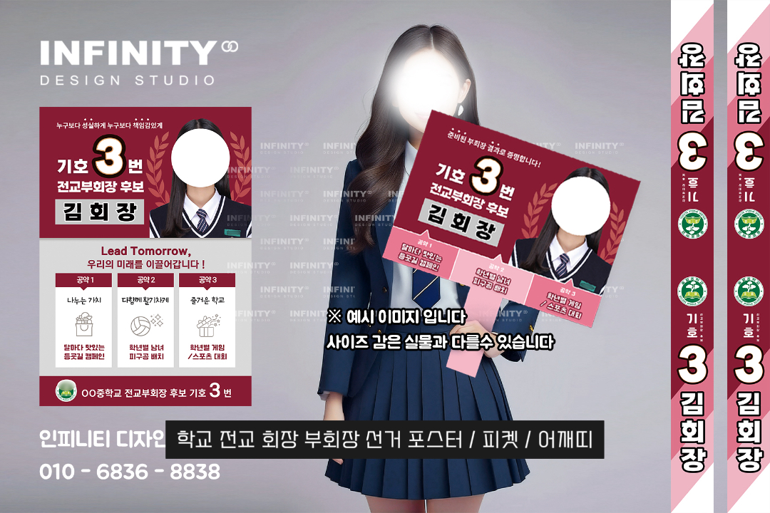 안녕하세요, 디자인·제작 전문 인피니티 디자인 스튜디오입니다 😊전교회장 선거 준비로 한창 바쁘신가요?선거 포스터와 피켓 제작,디자인부터 인쇄, 배송까지 한 번에 해결해 드립니다. 전교