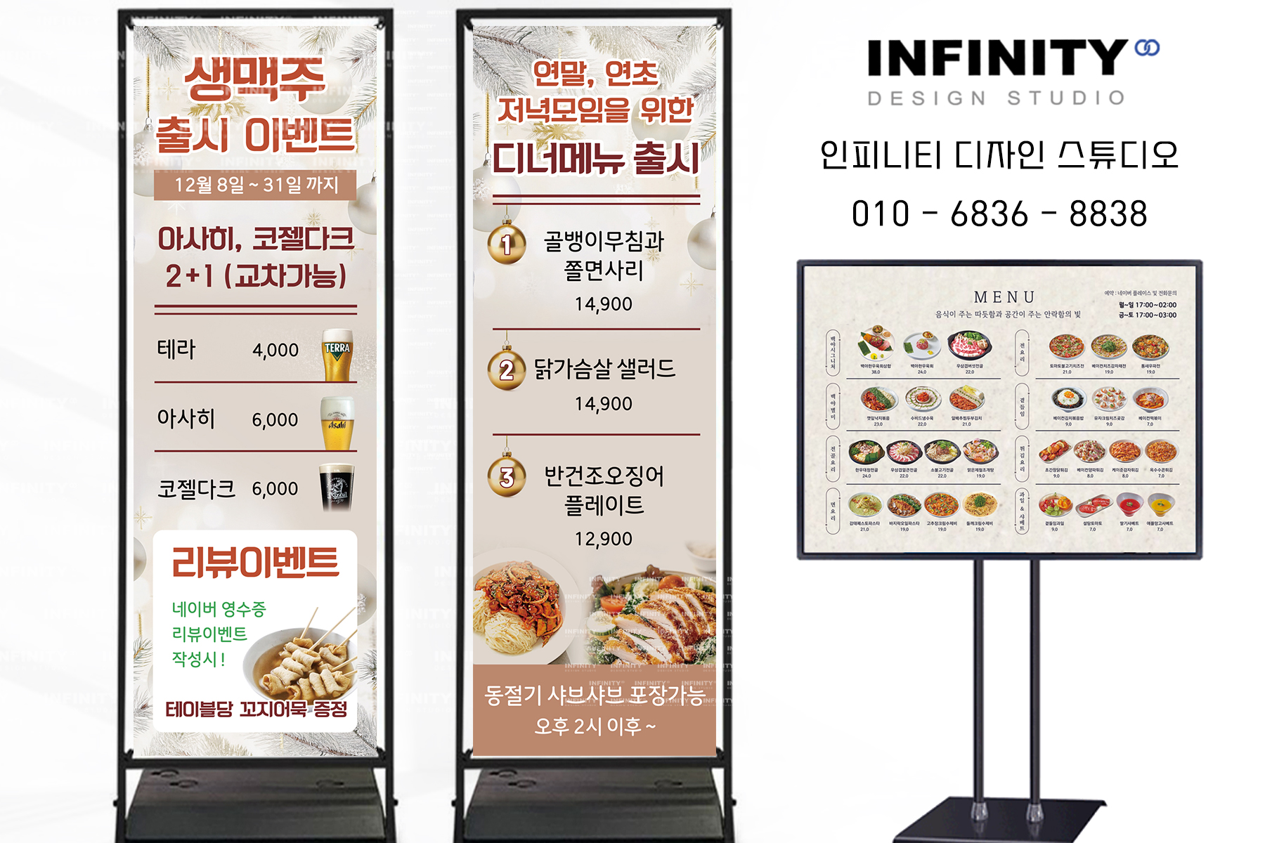 배너, 메뉴판, 메뉴 액자, DID, 포스터 등