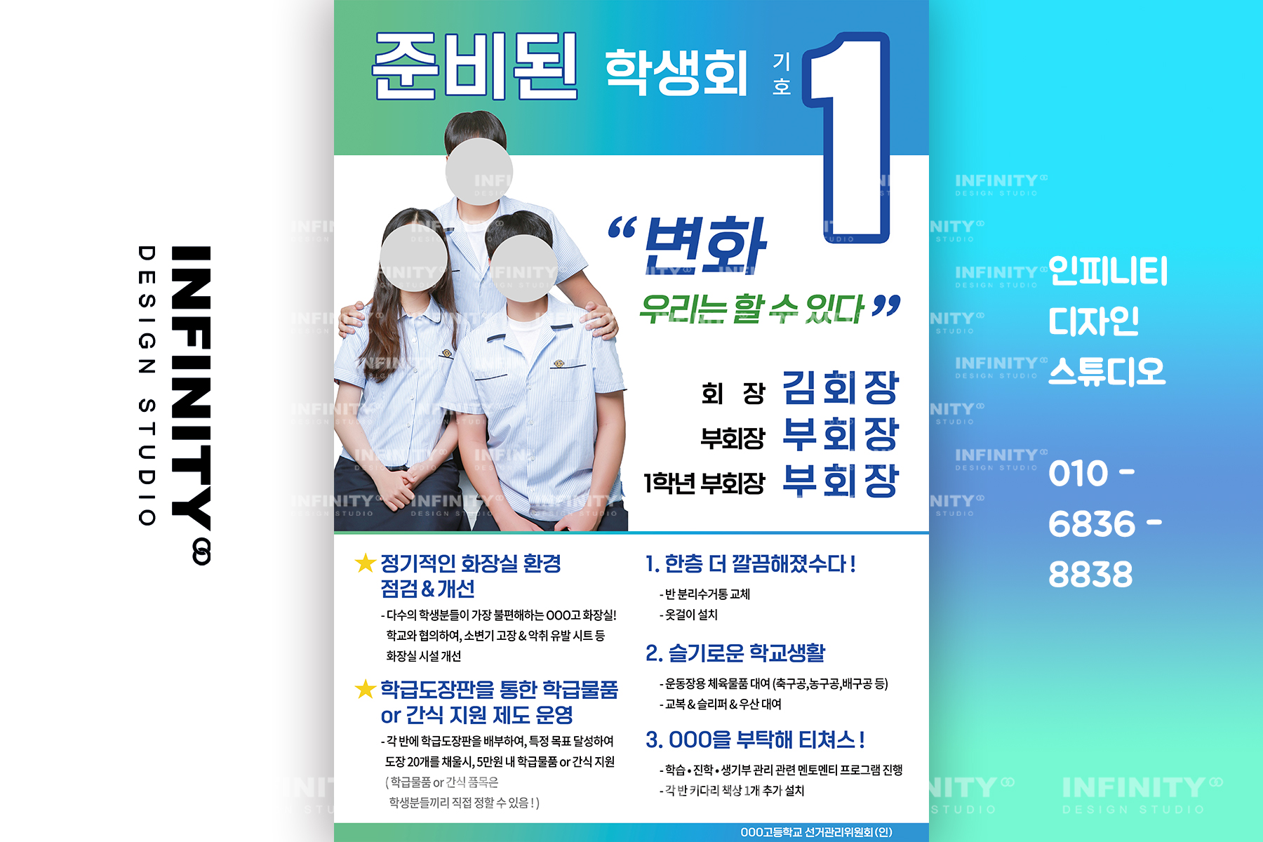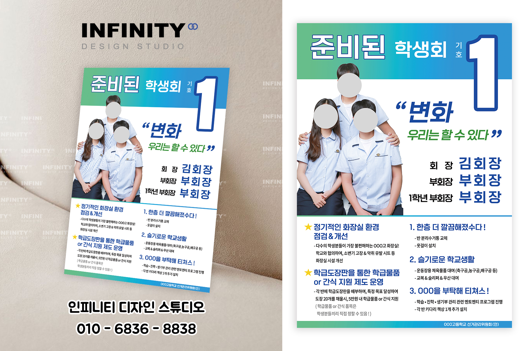 안녕하세요, 디자인, 제작 전문 인피니티 디자인 스튜디오 입니다 :) 오늘은 전교회장부회장 선거준비로 의...
