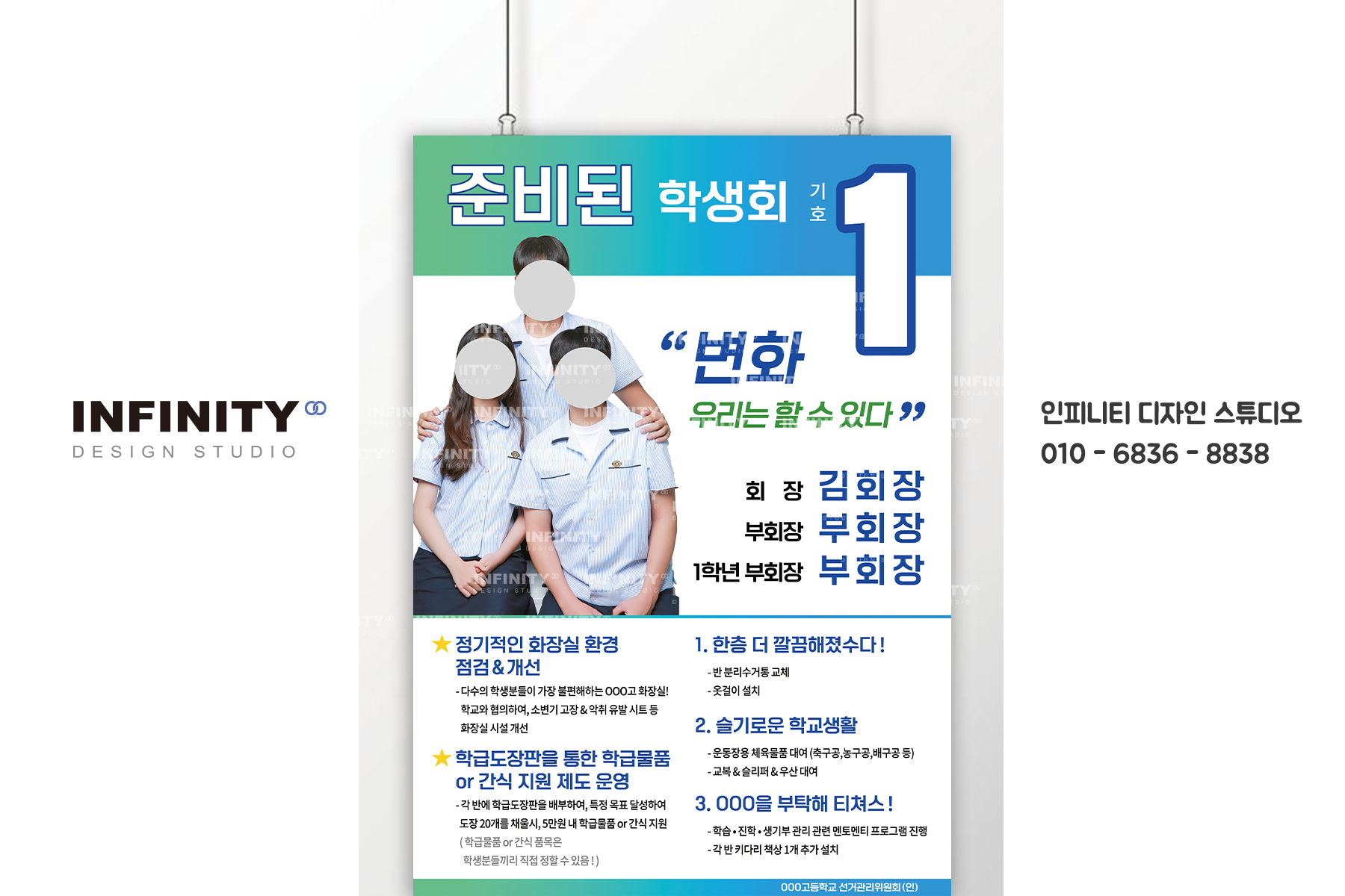 안녕하세요, 디자인, 제작 전문 인피니티 디자인 스튜디오 입니다 :) 전교회장 선거 포스터, 피켓 제작! 산...