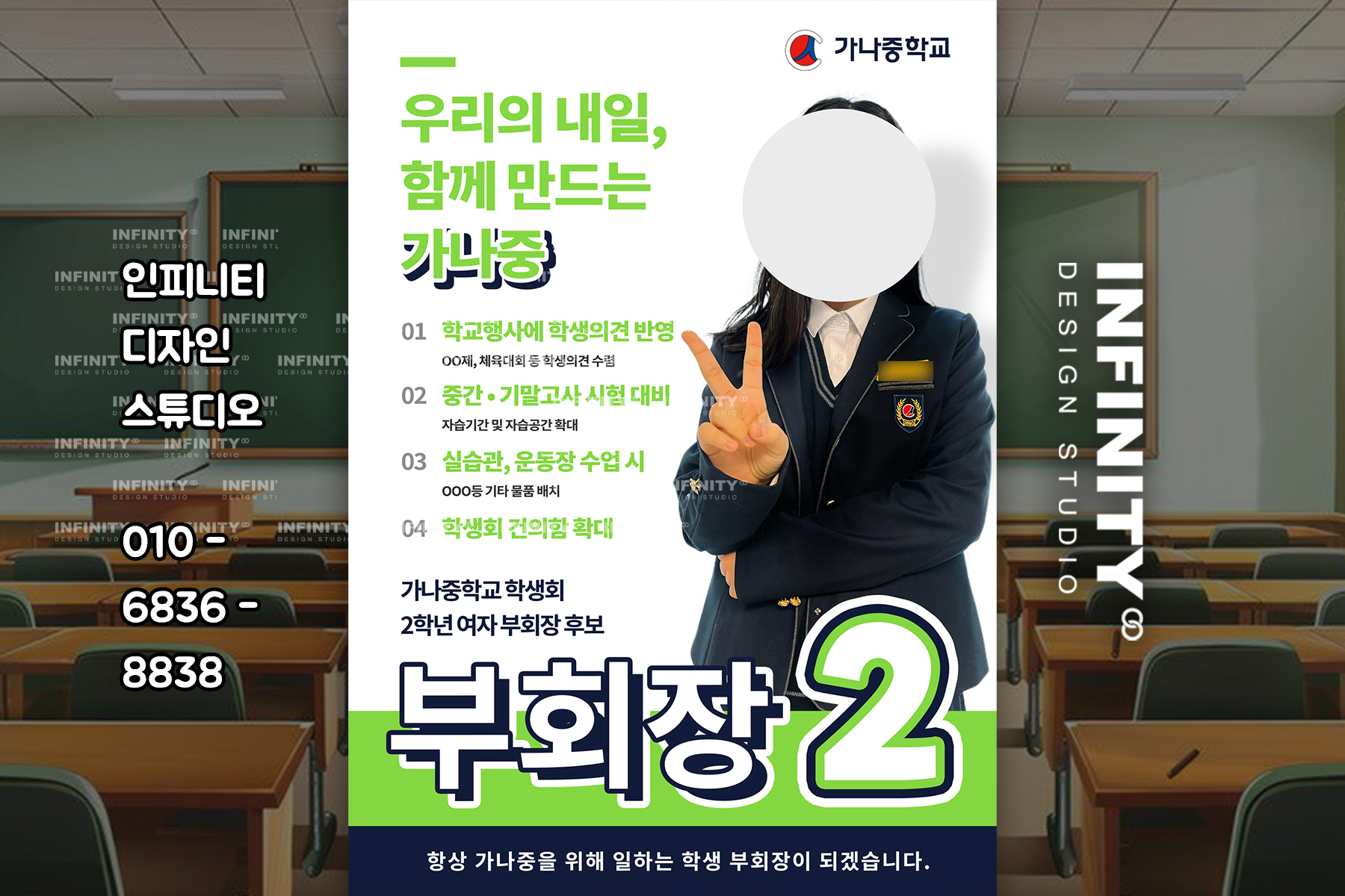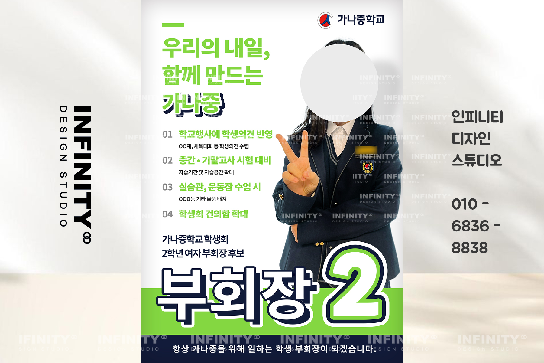 안녕하세요, 디자인, 제작 전문인피니티 디자인 스튜디오 입니다 :)오늘은 전교회장 선거 포스터, 피켓, 어깨띠진행 소식 포스팅 드려요 학생 전교회장 선거 포스터 디자인, 제작,전교회장 부회