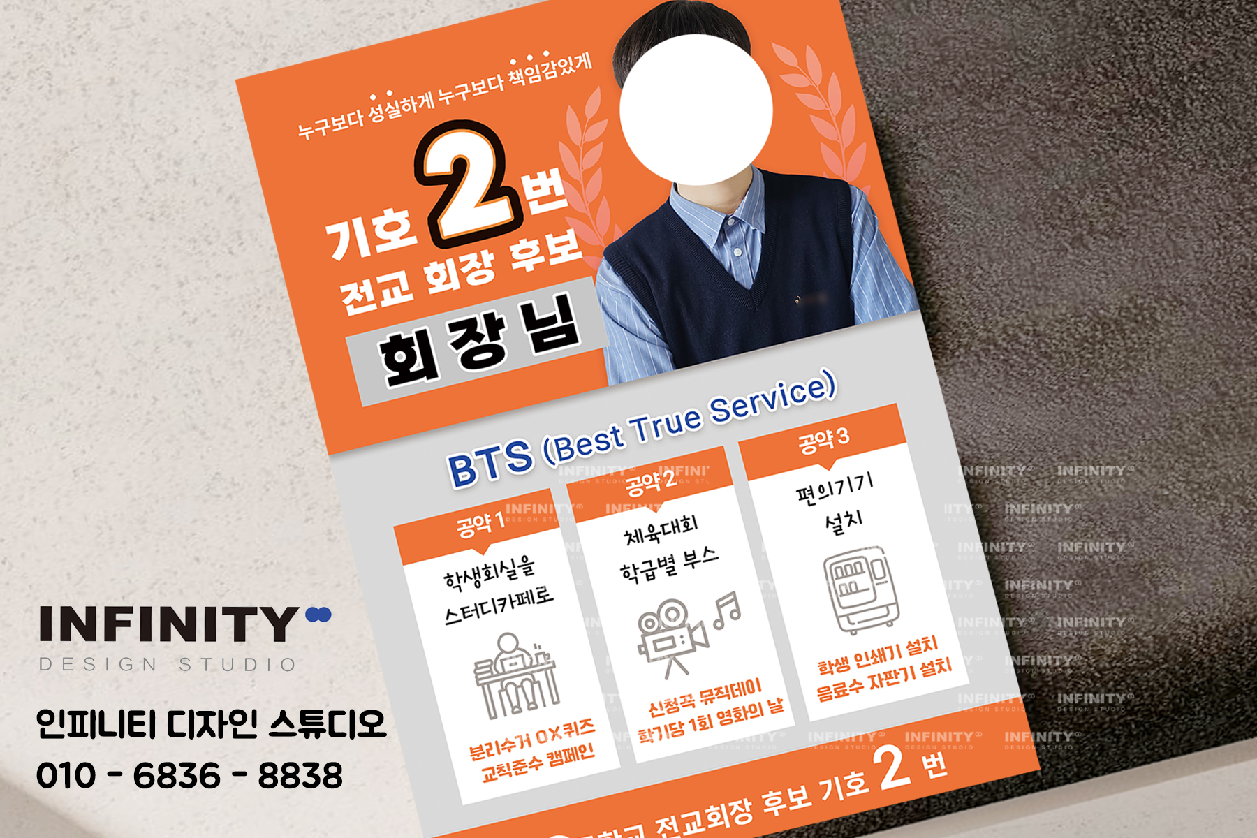 안녕하세요, 디자인, 제작 전문인피니티 디자인 스튜디오 입니다 :)오늘은 전교회장 선거 포스터, 피켓, 어깨띠진행 소식 포스팅 드려요 학생 전교회장 선거 포스터 디자인, 제작,전교회장 부회