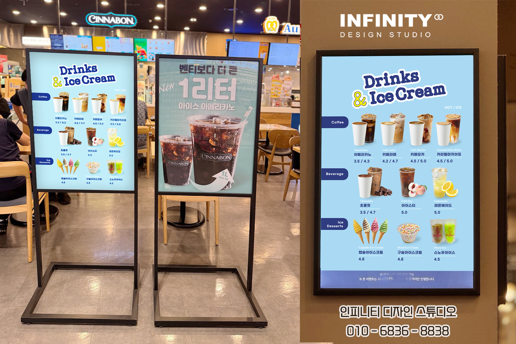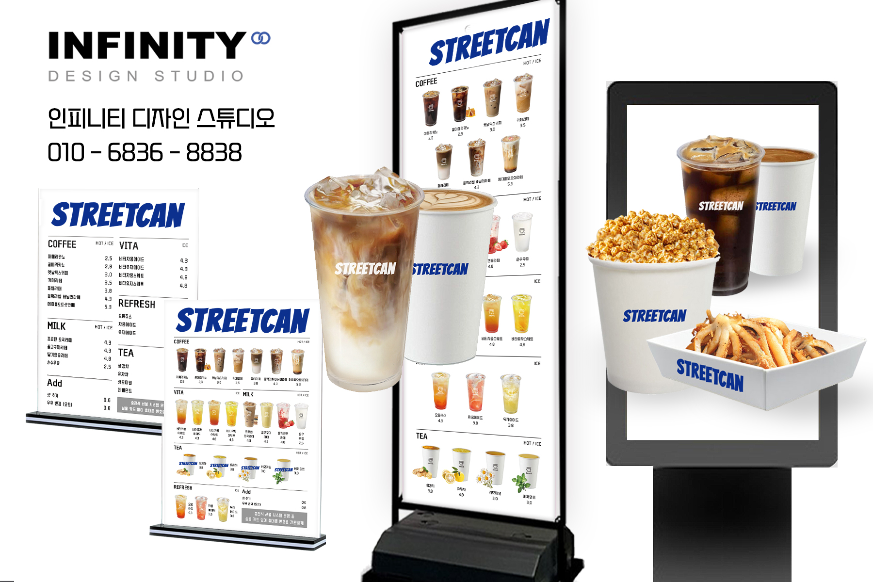 안녕하세요, 디자인, 제작 전문인피니티 디자인 스튜디오 입니다 :) 티비 모니터 메뉴판 디자인카페 / 음식점 / 매장 / 각종 홍보물맞춤 디자인, 제작 OK ! 카페 전자 티비 모니터 메뉴판 디자인,카
