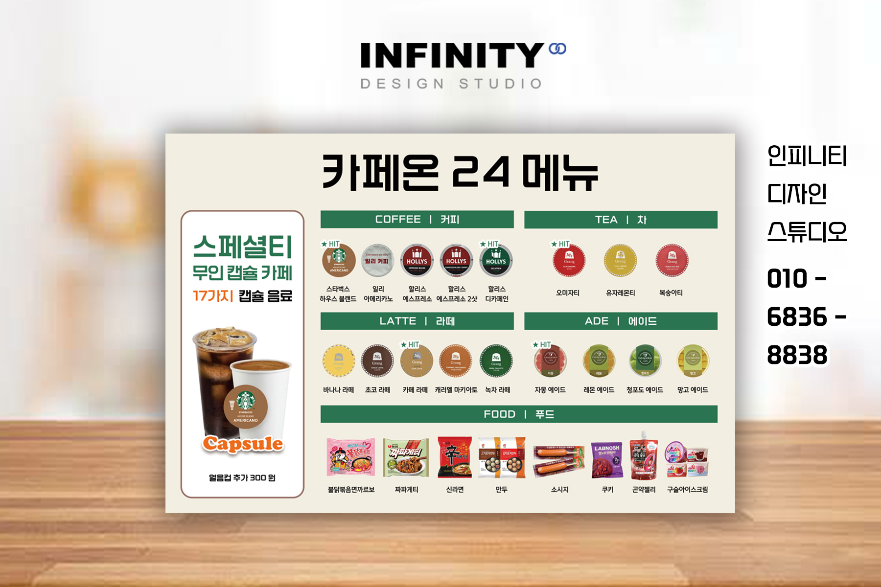 배너, 메뉴판, 캡슐커피 안내 시트, 포스터 제작 소식